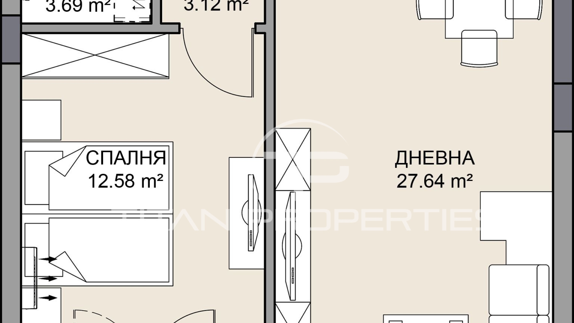 • дневна с трапезария и кухненски бокс