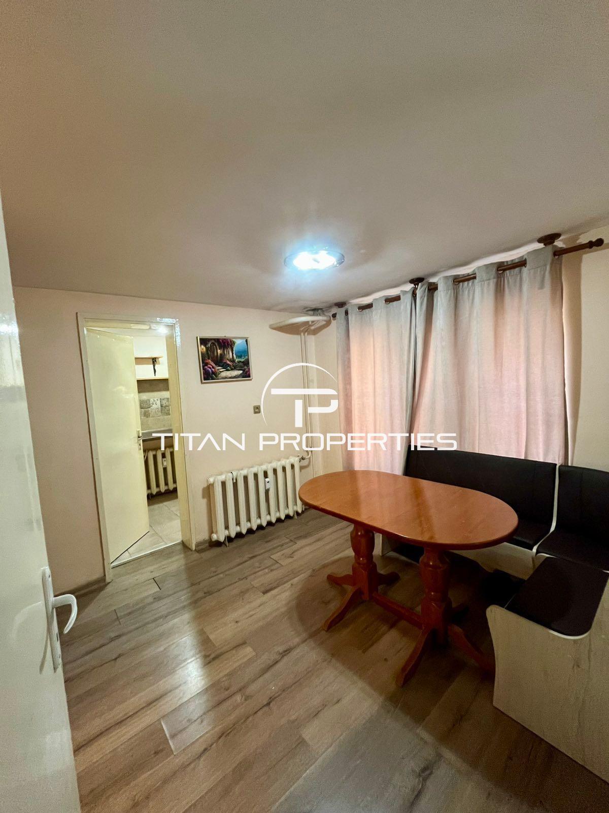 Титан Пропъртис предлага за продажба двустаен апартамент в кв. Кършияка. Намира се в непосредствена близост до търговски обекти, хипермаркети и спирки на градски транспорт.