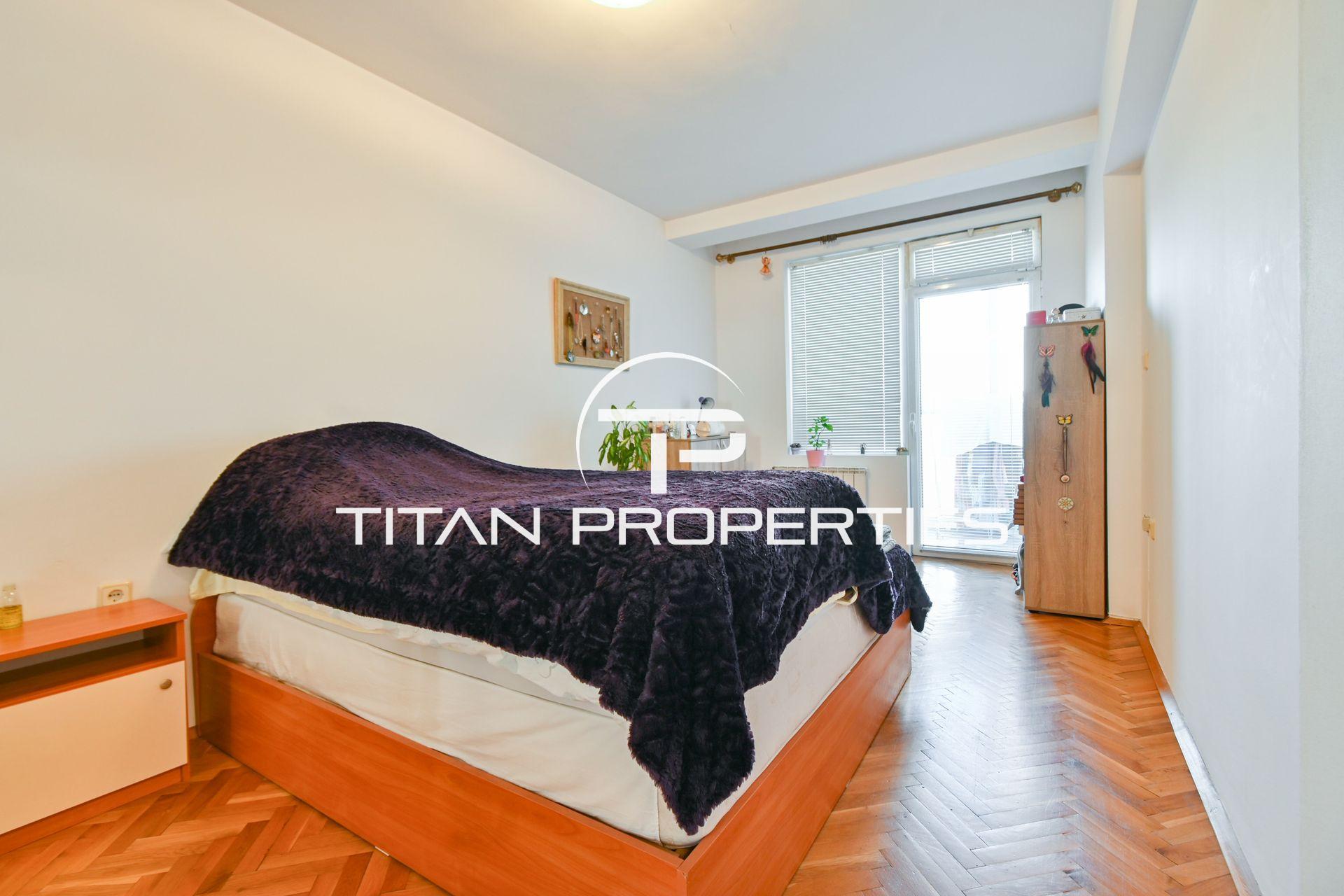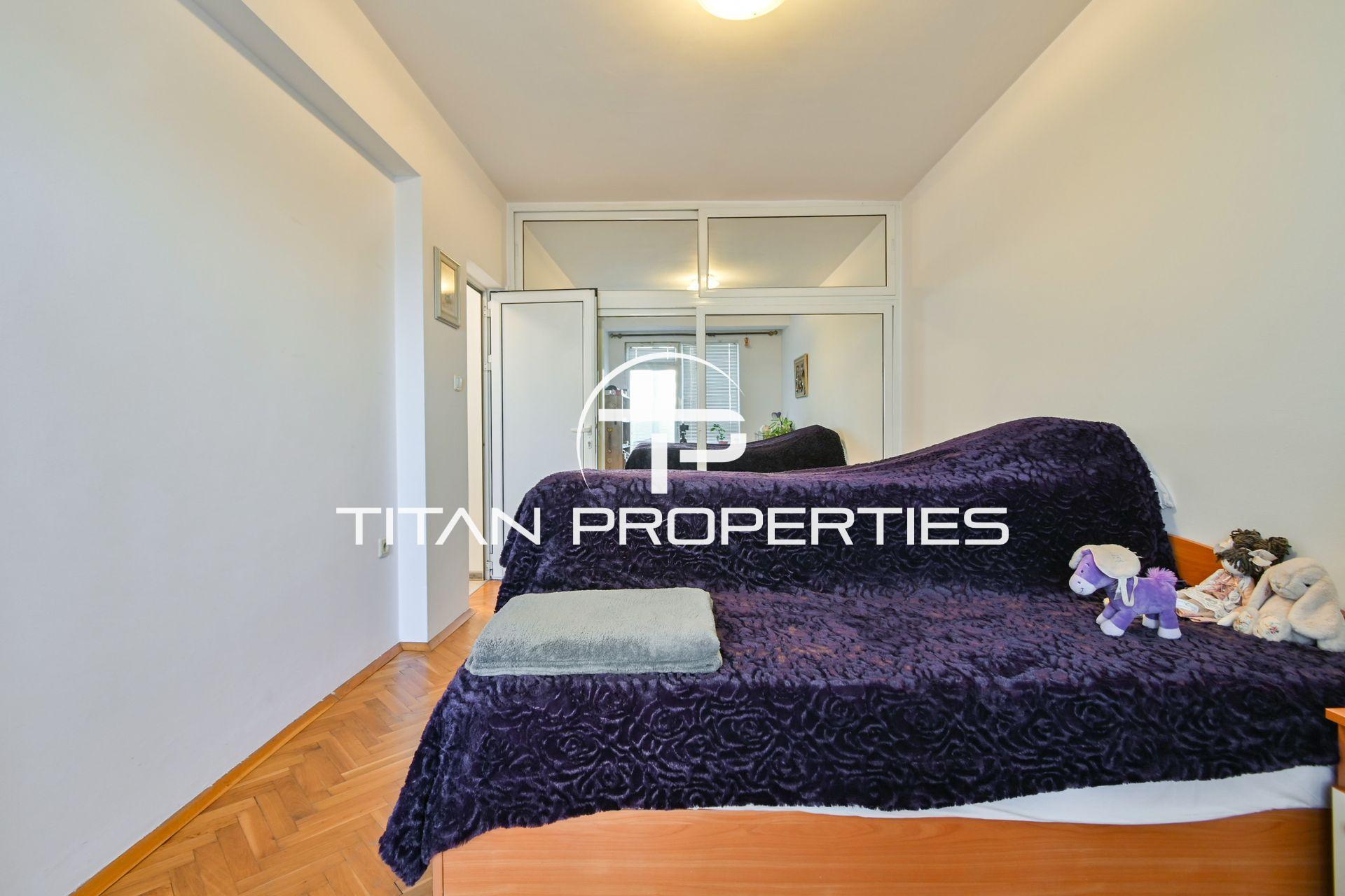 Титан Пропъртис офис - Бул. България с радост предлага на Вашето внимание двустаен апартамент за продажба в кв. Медицинска академия. Жилището с площ 76 кв.м. е разположено на 6-ти етаж от общо 7 в тухлена сграда. Източното изложение осигурява приятна утринна светлина. Функционалният план включва всекидневна с кухненски бокс, спалня, баня с тоалетна, складова ниша, две тераси и мазе. Апартаментът е обзаведен и разполага с централно отопление (ТЕЦ). Новото строителство предлага модерни детайли и качествени материали, гарантиращи комфорт и устойчивост във времето.