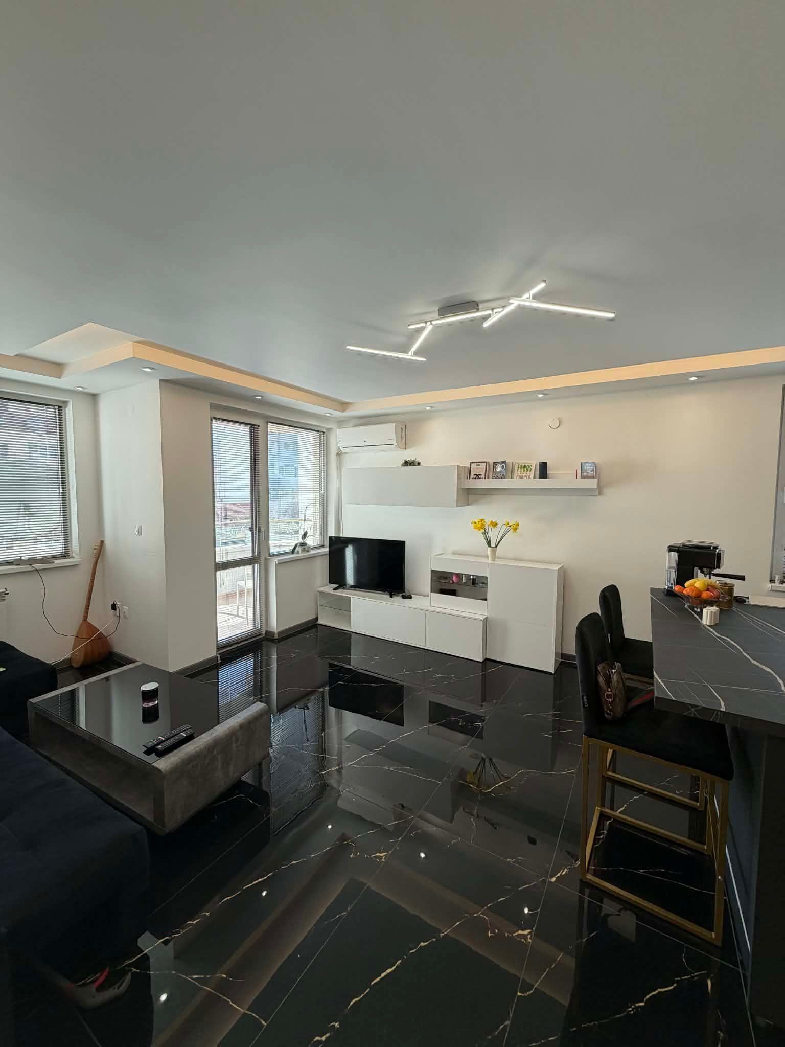 Апартаментът е напълно обзаведен и готов за нанасяне, отоплява се на ТЕЦ и разполага с климатик. Освен това, на разположение е споделено паркомясто в двора на сградата, където можете да паркирате автомобила си.
