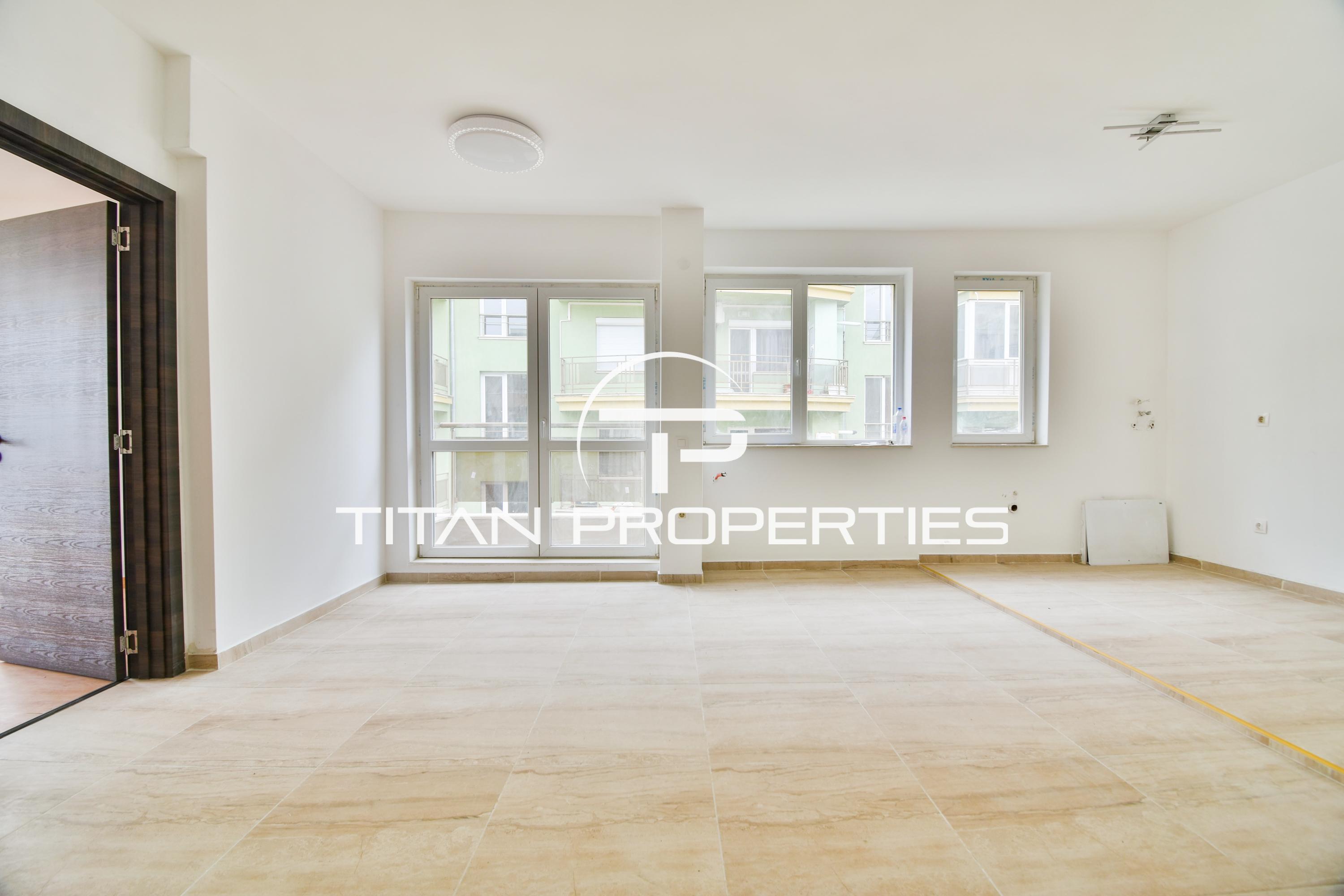Титан Пропъртис офис - Бул. България с радост предлага на Вашето внимание тристаен апартамент за продажба в кв. Манастирски ливади. Жилището със застроена площ от 99 кв.м. е разположено на 2-ри етаж в нова четириетажна сграда. Изложение Изток/Юг. Разпределението включва входно антре, хол с кухненски бокс, две спални (едната с 4 кв.м. гардеробна), баня с тоалетна, мокро помещение и две тераси. Отоплението е на газ.
