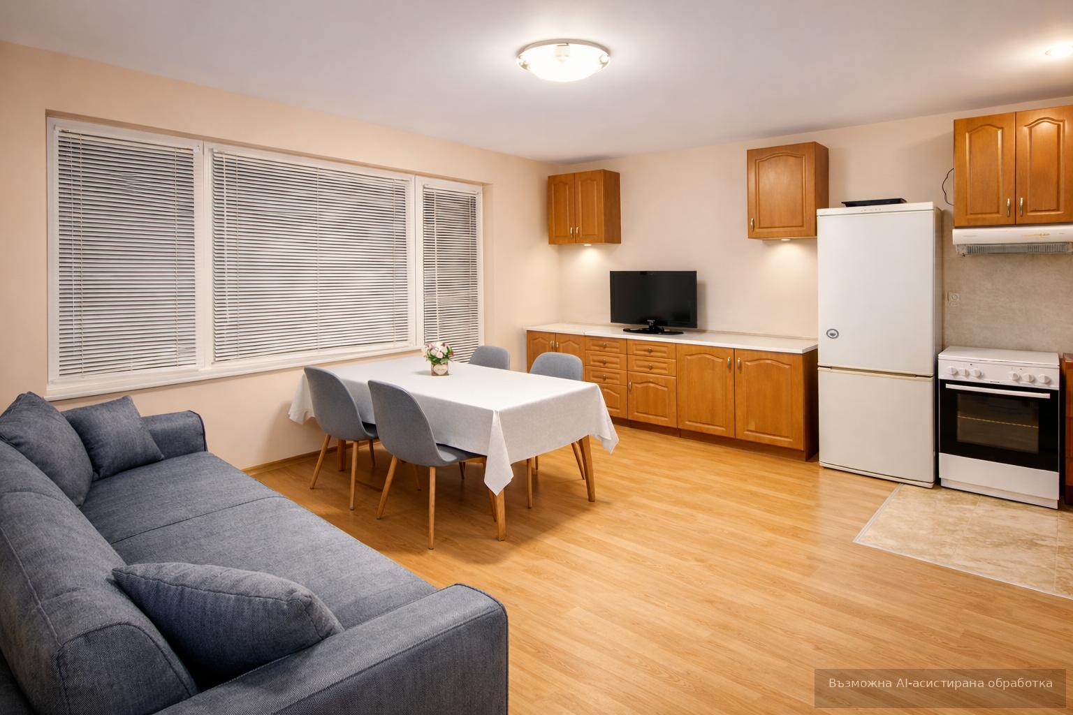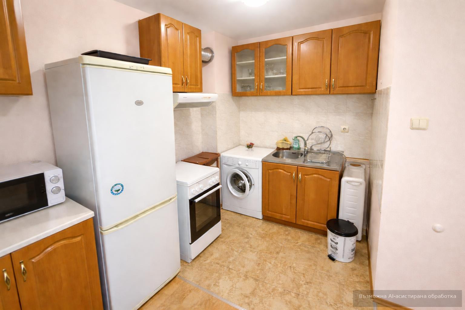 Имотът се предлага напълно обзаведен с всичко необходимо за едно домакинство, с контрол на входа с чип и добре поддържани и чисти общи части.