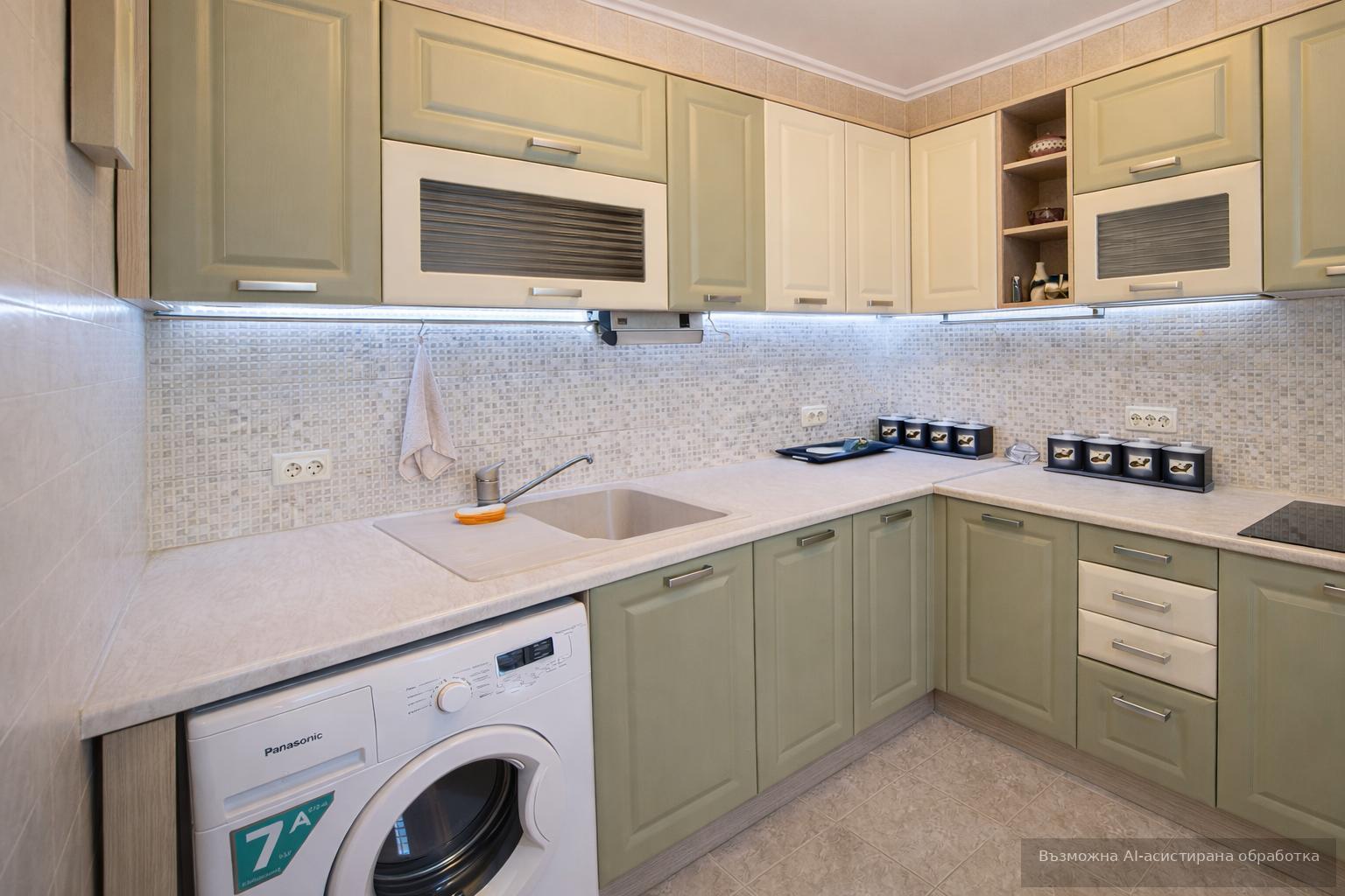 Жилището се предлага напълно обзаведено и оборудвано с всичко необходимо за едно домакинство.