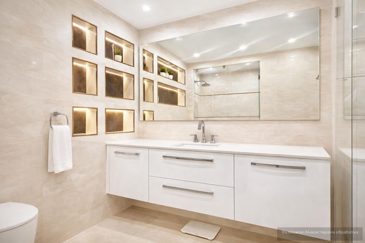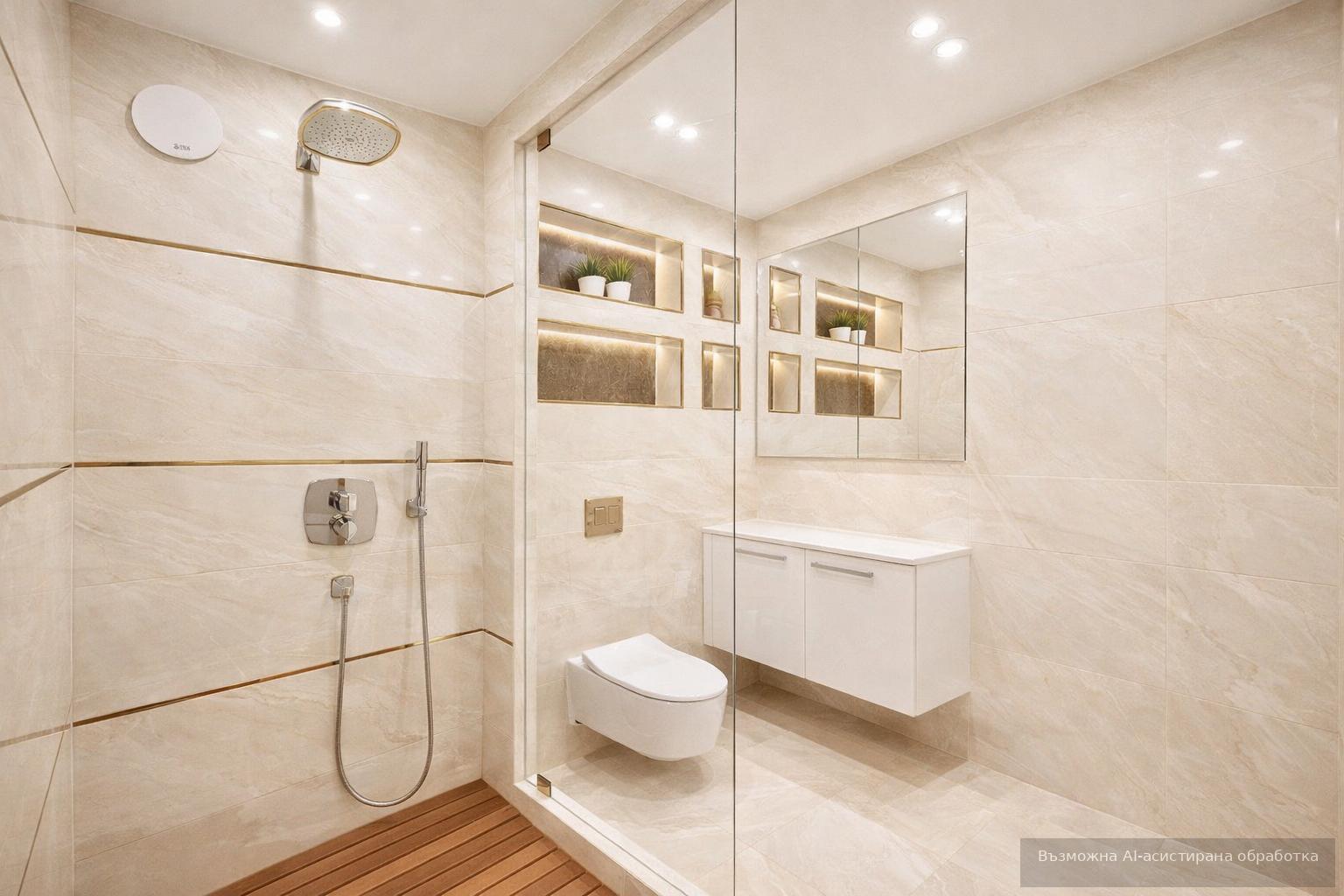 Жилището се предлага напълно оборудвано с инверторни климатици Daikin, електроуреди Bosch, пералня със сушилня, както и подово отопление в банята .