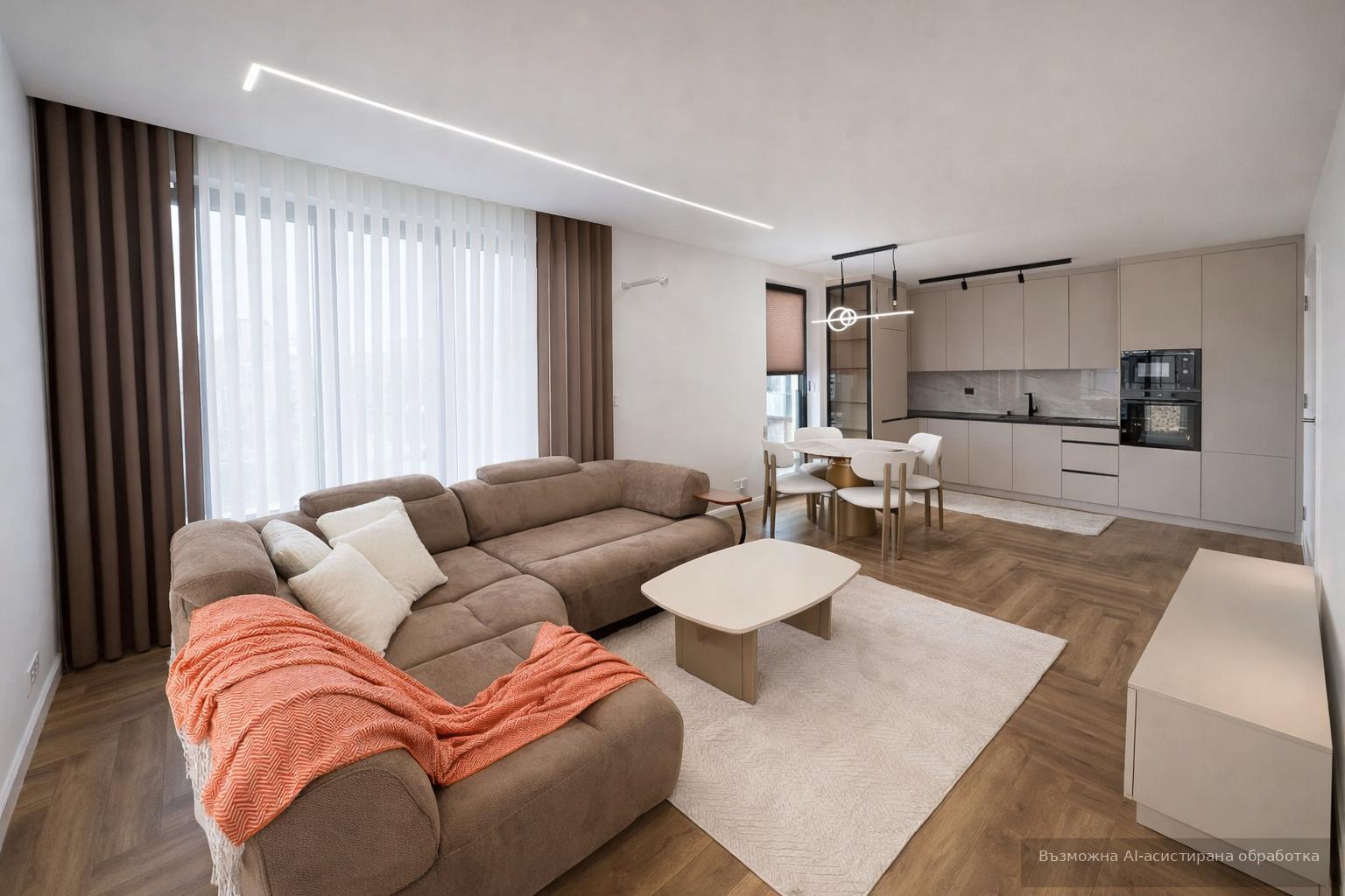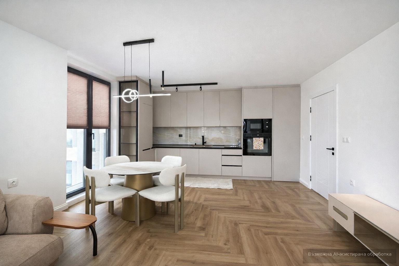 Жилището се предлага модерно обзаведено и оборудвано с всичко необходимо за едно домакинство.