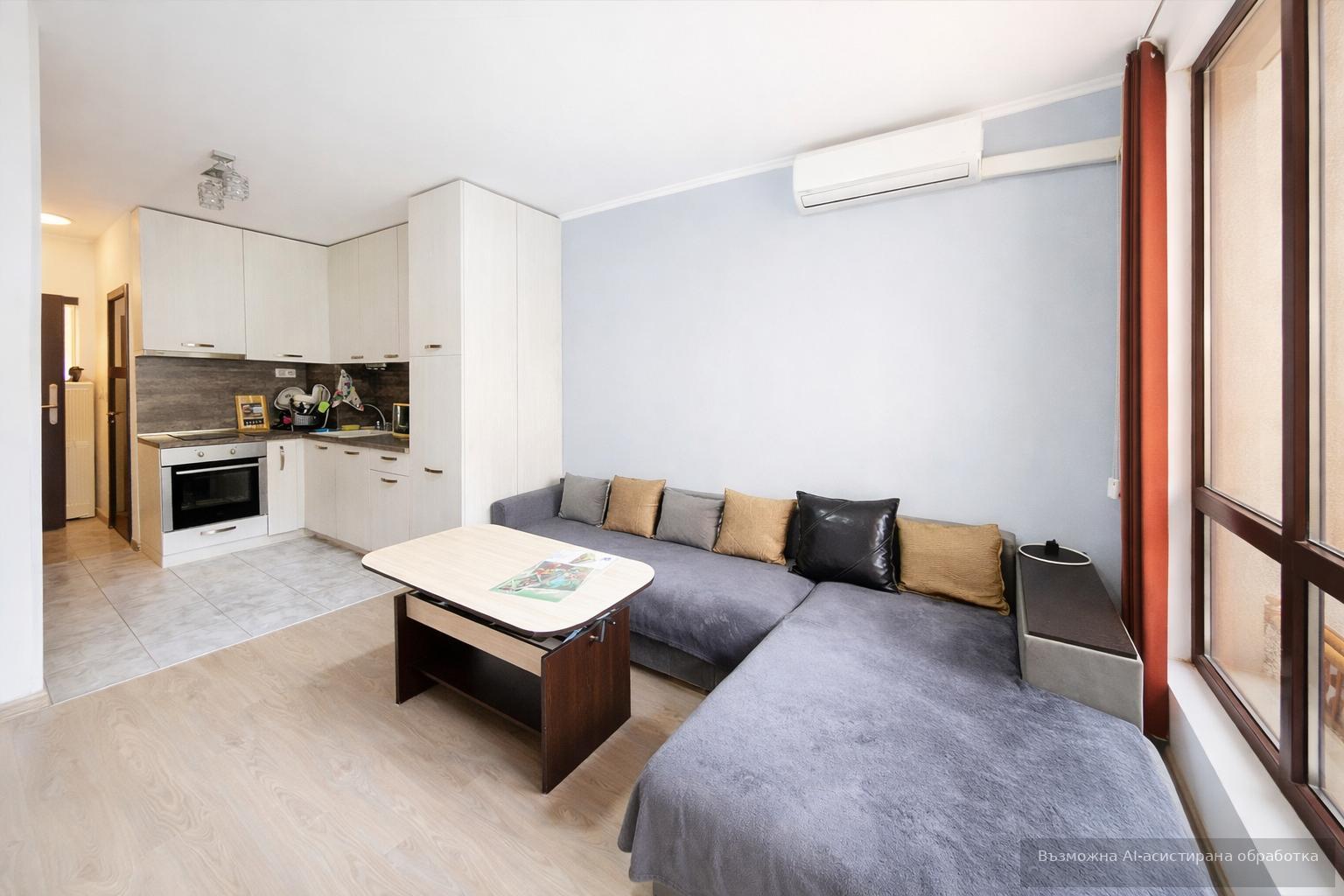 Жилището се предлага напълно обзаведено и оборудвано с всичко необходимо за едно домакинство. Към апартамента има и изба.