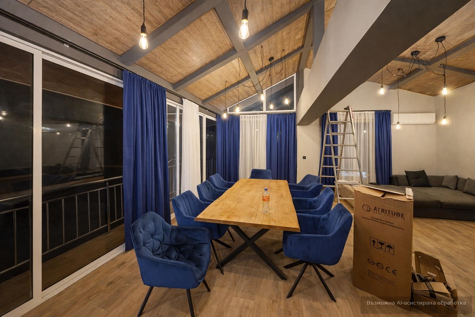 Жилището се предлага напълно обзаведено и оборудвано с всичко необходимо за едно домакинство. Дворът е с площ 2000 кв.м.