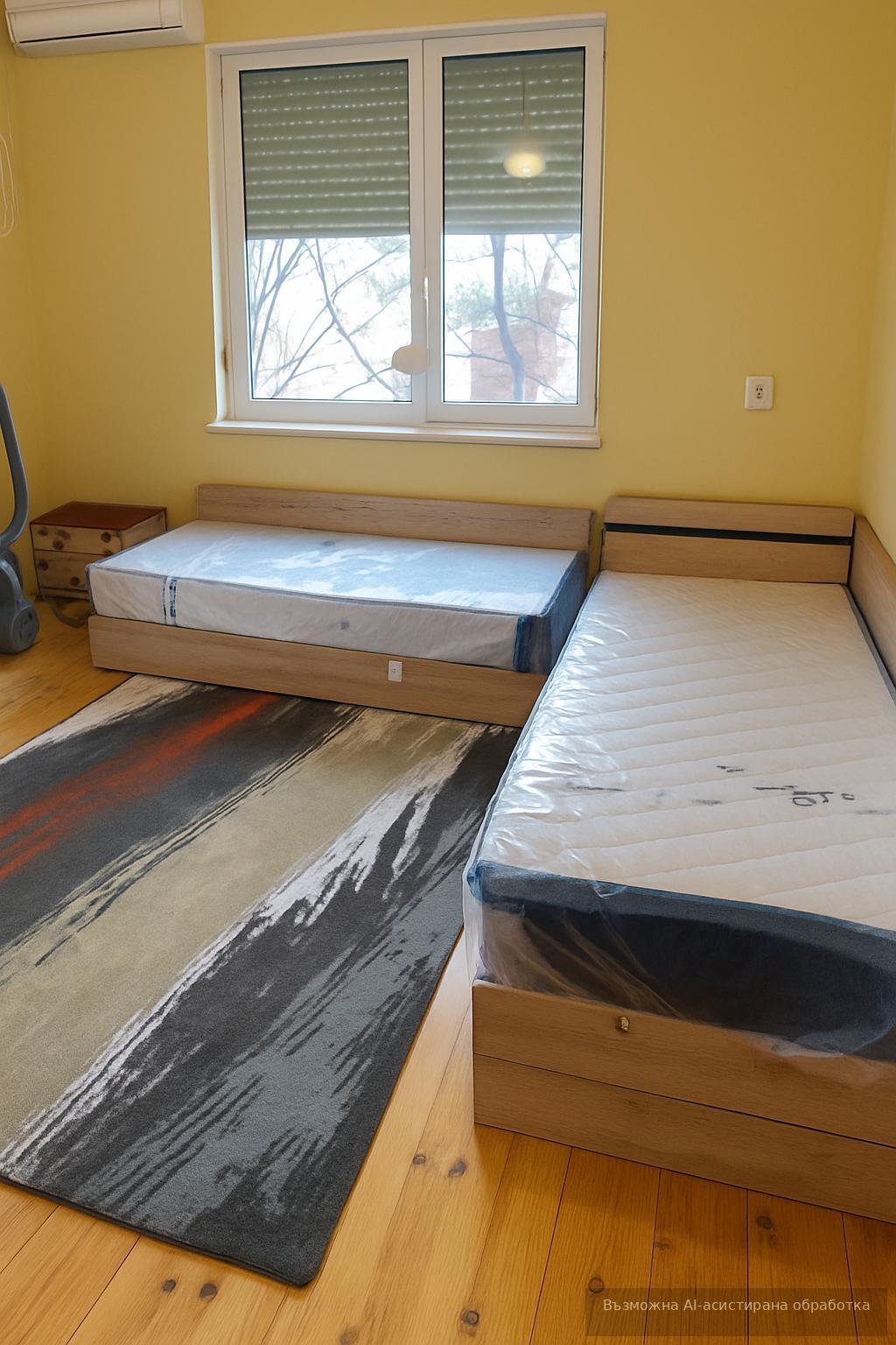 Жилището се предлага напълно обзаведено и оборудвано с всичко необходимо за едно домакинство. Към апартамента има включено паркомясто в двора на кооперацията.