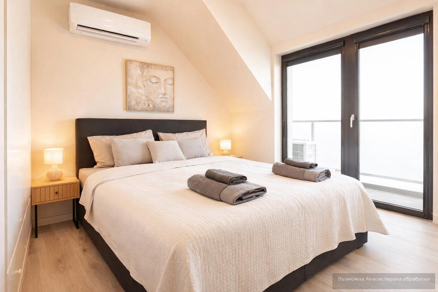 Жилището се предлага напълно обзаведено и оборудвано с всичко необходимо за едно домакинство.