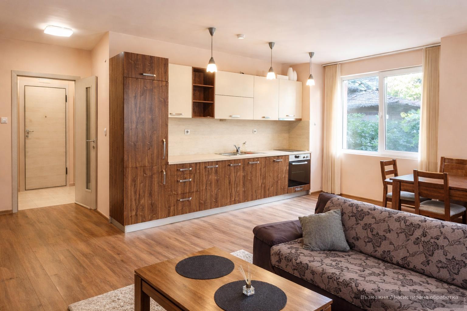 Жилището се предлага напълно обзаведено и оборудвано с всичко необходимо за едно домакинство.