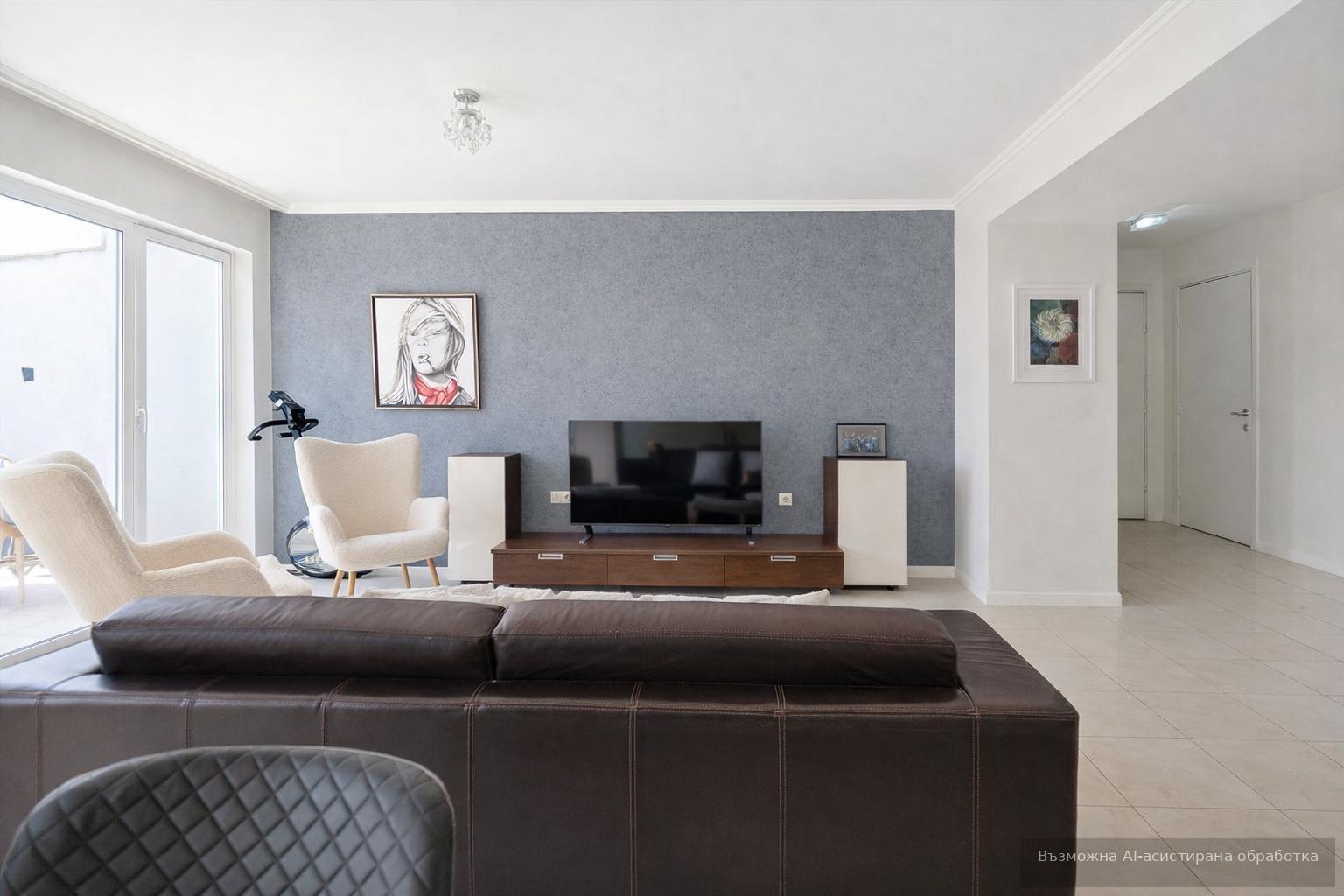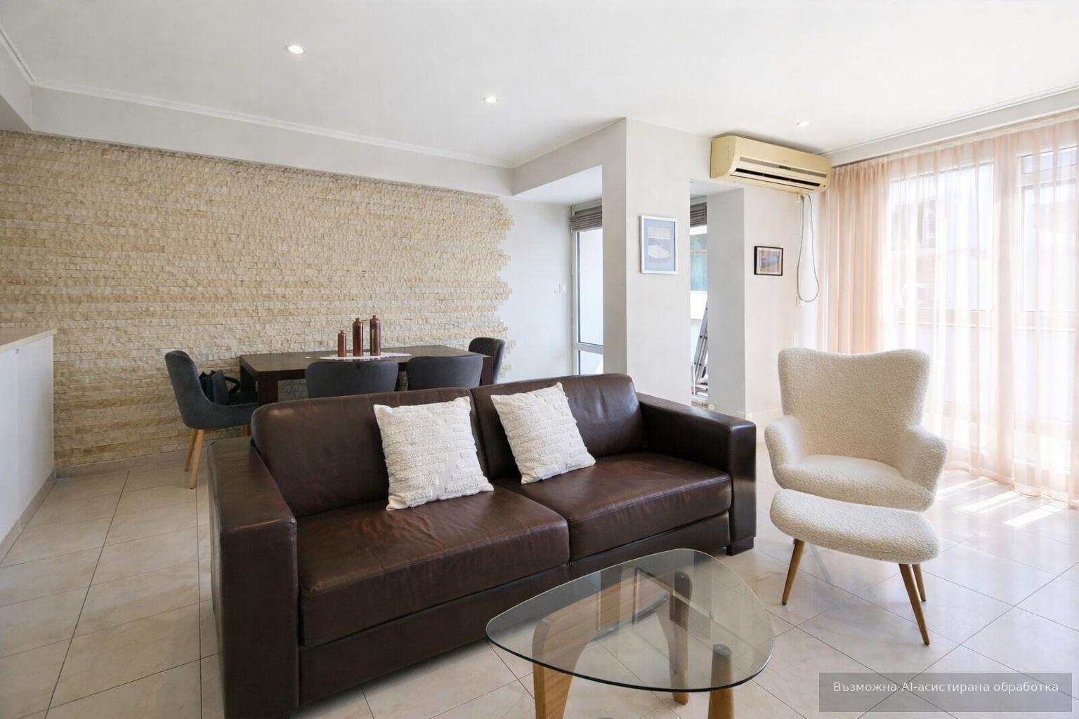 Жилището се предлага модерно обзаведено и оборудвано с всичко необходимо за едно домакинство.