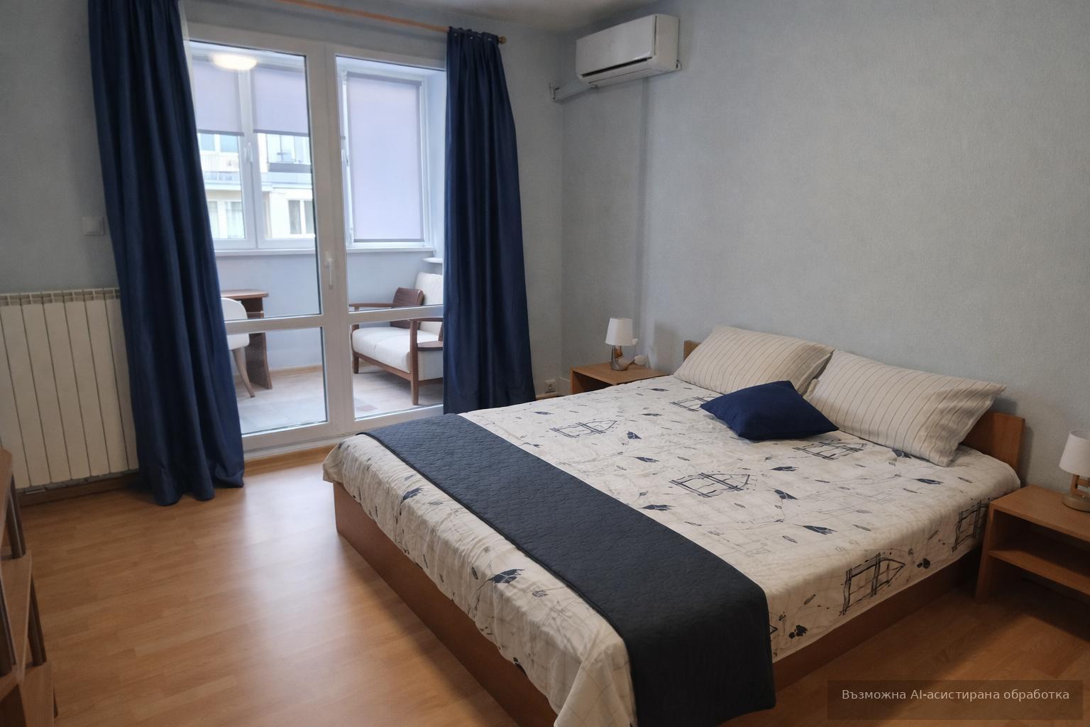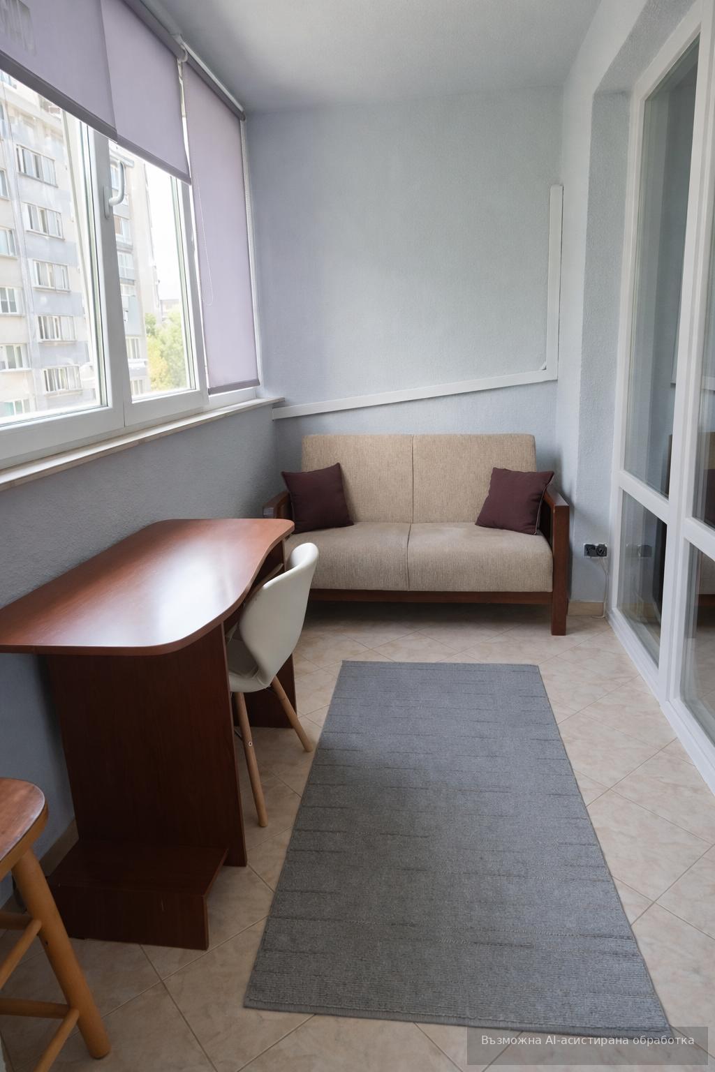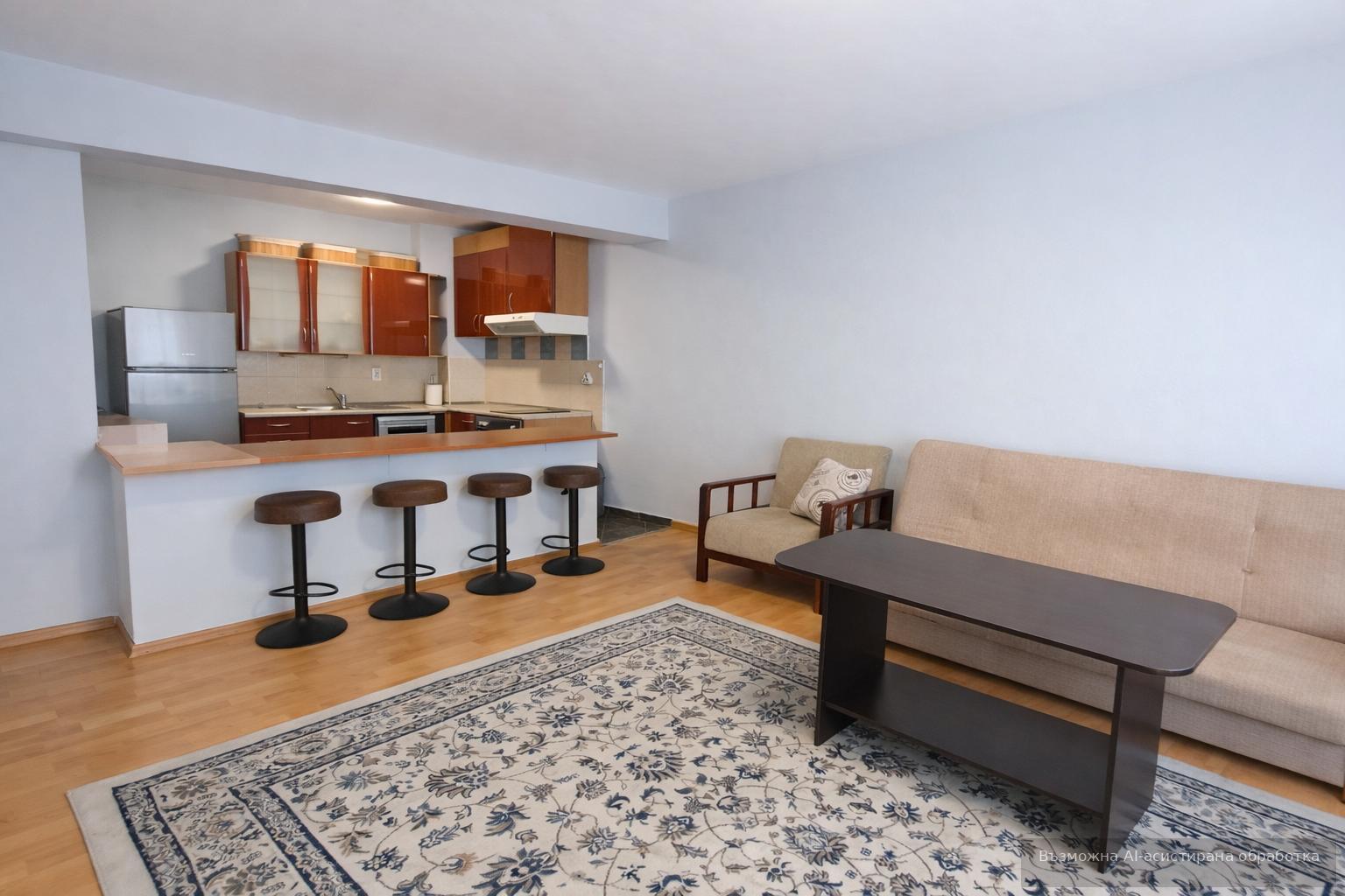 Разполага с функционално разпределение: хол с кухня, спалня, баня и тераса. Обзаведен и отоплява се на ТЕЦ. Месечната наемна цена е 650 EUR. Апартаментът е отлично поддържан и удобно разположен близо до градски транспорт.