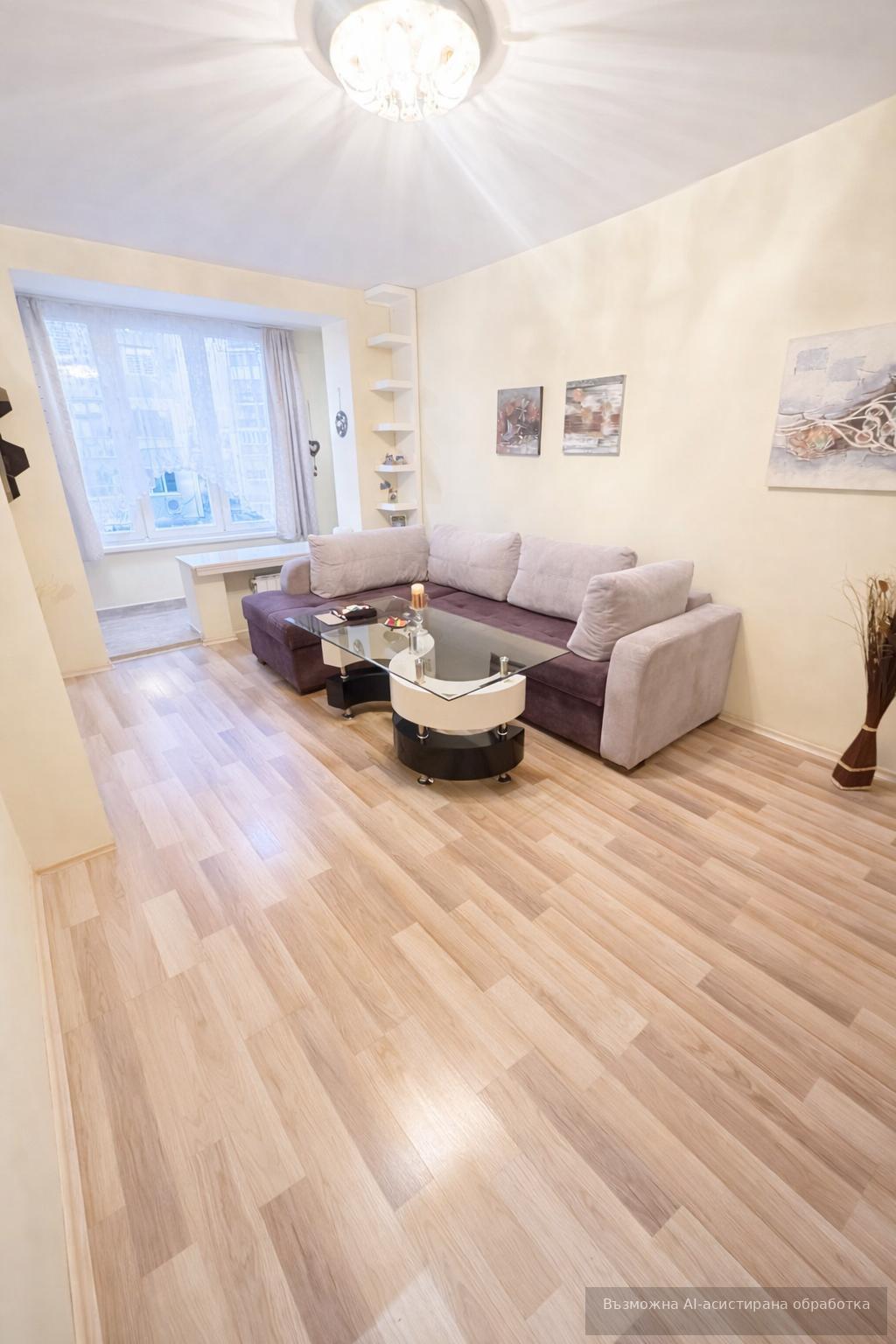 Обзаведен и оборудван с дневна, кухня, спалня, баня с тоалетна, апартаментът се отоплява на ТЕЦ.