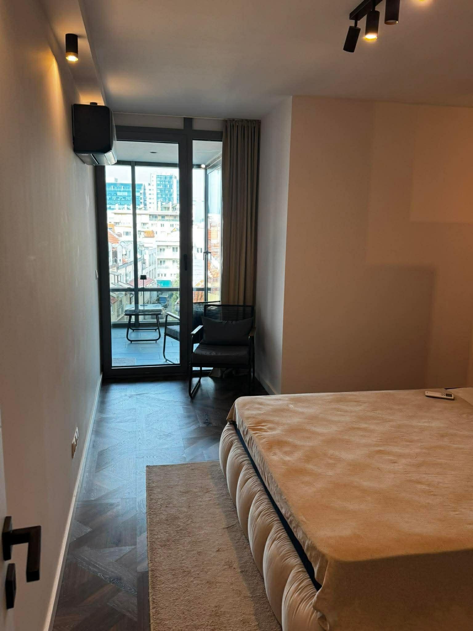 Обзаведен и оборудван с климатик и газово отопление, апартаментът предлага интернет окабеляване и луксозни довършителни работи. Месечният наем е 1000 EUR.
