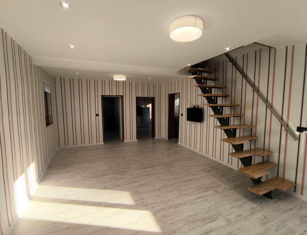 На първо ниво са входно антре, комбиниран кухненски бокс и хол, както и удобна тоалетна. Вторият етаж предлага три спални и баня с тоалетна.