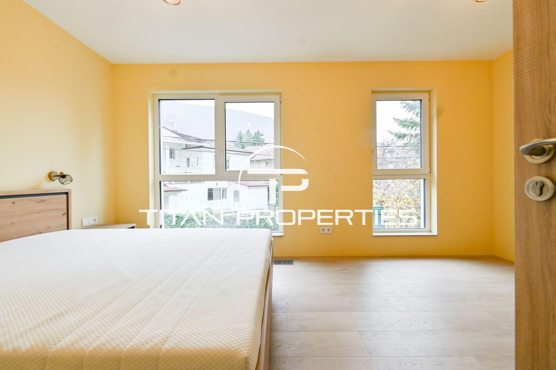 Титан Пропъртис - офис Младост с радост предлага на Вашето внимание луксозна къща под наем в кв. Драгалевци, София с обща площ 400 кв.м. в нова къща. Разпределението включва сутерен: механа, винарна изба, котелно помещение със сензор против наводнение, перално помещение с улей от всички бани, склад с rack шкаф за интернет, СОТ и Smart home система. Партерното ниво включва хол с кухненски бокс и трапезария склад с топла връзка към гаража, веранда, двор и паркомясто. Вторият етаж разполага с три спални с отделни тераси, една със собствена баня и дрешник, както и допълнителна баня и тоалетна. На третия етаж е голяма стая/офис с П-образна тераса и баня с тоалетна. Отопление с термо помпа има опция и на газ. Разполага със системна Smart home за управление и следене на жилището. Къщата се предлага напълно обзаведено с чисто нови мебели и оборудвано с висок клас ел. уреди.