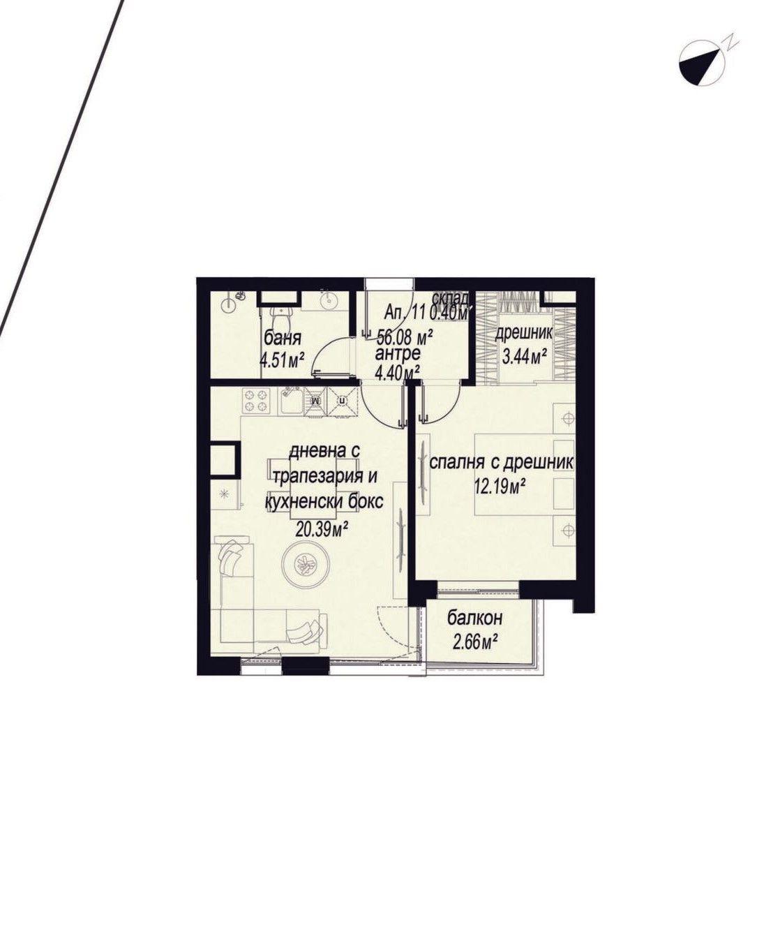 Квадратура: 56 m2