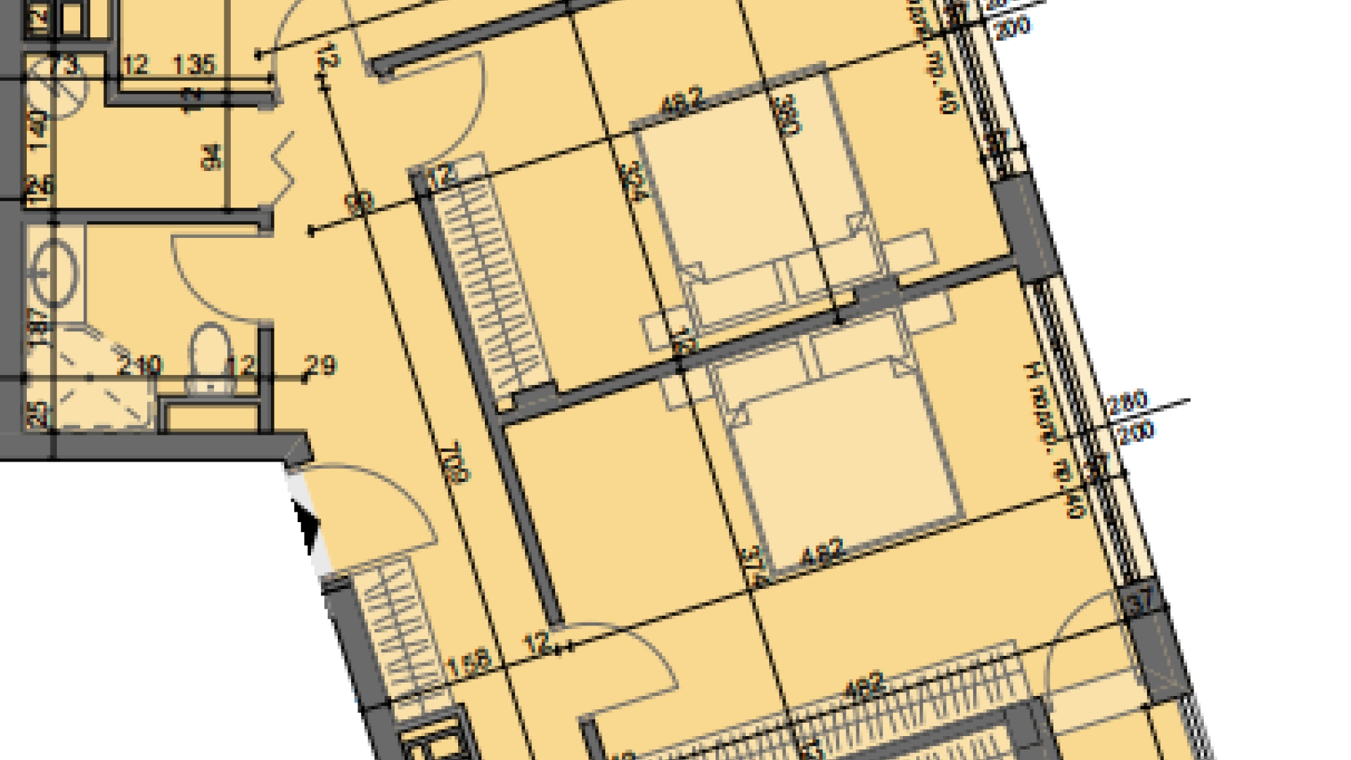 3 спални, 2 бани с тоалетни, едната от които е към едната спалня, склад, гардеробна към едната спалня, 2 тераси.