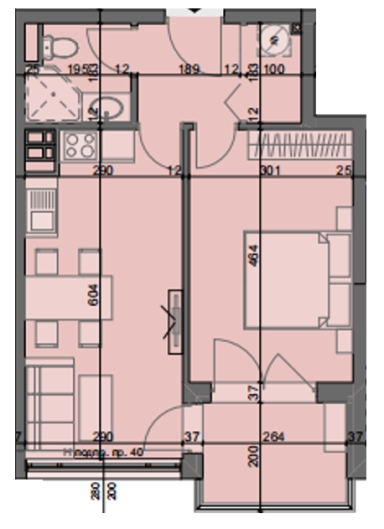 Available 64 m2 € 135000 BGN 264037.05Апартамент А25 е ситуиран на 6-ти жилищен етаж и разполага със застроена площ от 54,85 кв.м., разгърната по следния практичен начин: антре, дневна с трапезария и кухненски бокс, спалня, баня с тоалетна, тераса. Изложение: север/юг.