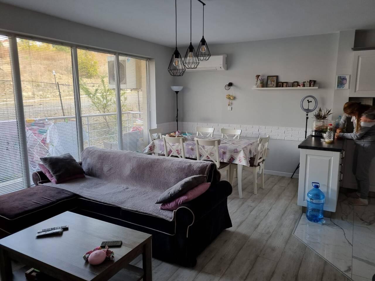 Агенция за недвижими имоти "Титан Пропъртис" предлага за продажба, Тристаен апартамент с АКТ 16 в гр. Свети Влас. Комплексът е разположен между курортите Свети Влас и Слънчев Бряг, в близост до балнеоложкия санаториум, чиято местност е известна с невероятния си лечебен въздух. Освен шумния нощен живот на курорта, комплексът предлага тиха и пълноценна почивка. Но в същото време можете да се потопите в ритъма на развлеченията – само на пет минути с кола или автобус има много нощни клубове, кафенета, ресторанти. Автобусната спирка е удобно разположена на 3 минути от комплекса, откъдето редовно се движат автобуси до Слънчев бряг, Несебър. Безплатен паркинг се намира пред входа на комплекса. Удобства в комплекса: голям басейн, барбекю зона и голяма детска площадка, контролиран достъп, видео наблюдение. Районът разполага с разнообразни възможности за спорт като водни спортове, конна езда, тенис корт и др. Най – новото и модерно яхтено пристанище с барове и ресторанти също се намира в близост до комплекса-само на 2.5 км.Ресторанти и уютни барове има и в непосредствена близост до плажа, както и голям супермаркет. Аквапарк " 0 " е на 3 км, а старият град Несебър е на 8 км. Имотът е ситуиран на партерен етаж и разполага с обща площ от 85 кв.м., разгърната в следното разпределение: входно антре, просторен хол с бокс кухня, две преходни спални, баня с тоалетна и голяма остъклена тераса, с излаз към двора, веранда. Жилището се продава с наличното обзавеждане с висок клас мебели, електроуреди и подови настилки. Изложение: северо-западно. Годишна такса поддръжка- 3€/кв.м. Местоположението го прави подходящ за хора, които обмислят покупка на имот с цел летен отдих, сезонно отдаване под наем или за целогодишно ползване. Агенцията съдейства за банково кредитиране с всички водещи банки в страната при най-добри условия! За оглед на това и други атрактивни предложения, не се колебайте да ни потърсите на посочения телефон или да ни изпратите данните си чрез формата за запитване на сайта. Реф. номер: 2092661