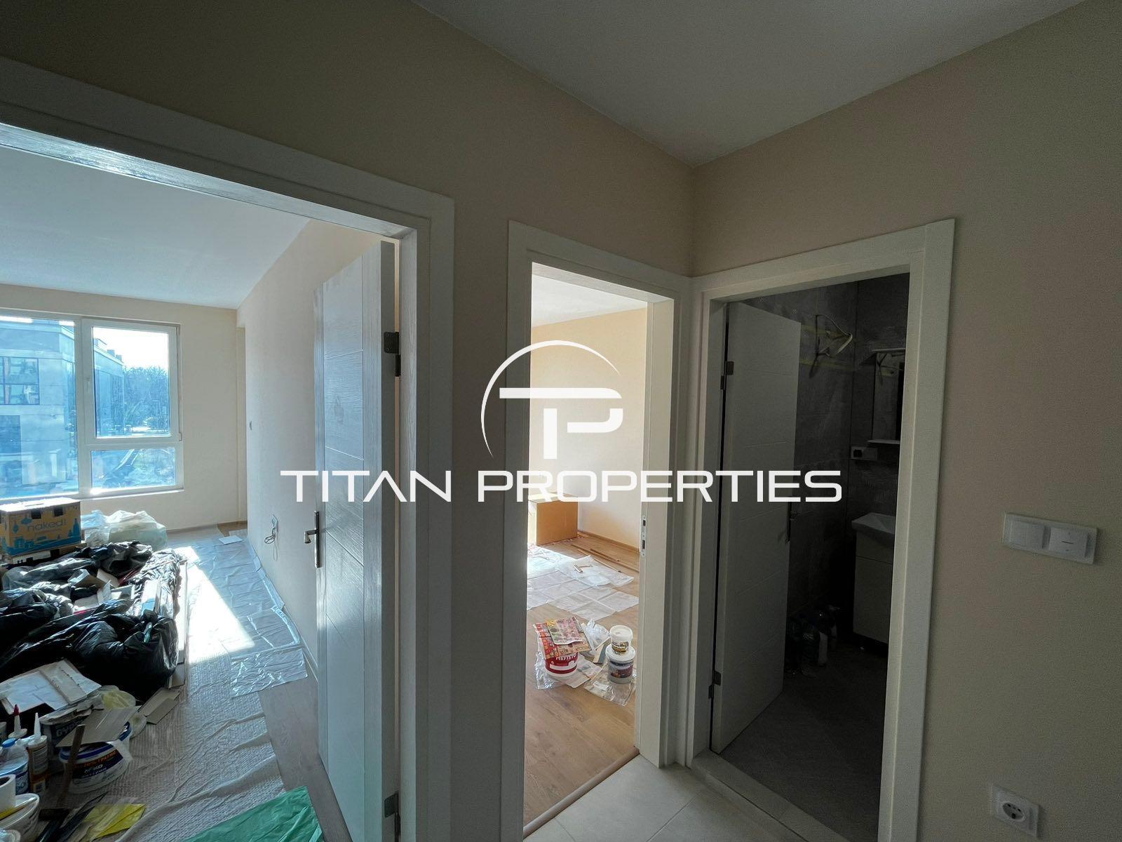 Жилището е напълно завършено и готово за обзавеждане. Монтирани са интериорни врати, стените и таваните са шпакловани и боядисани, банята е изцяло завършена с плочки, нов моноблок, шкаф с мивка и огледало. Подовата настилка в спалнята и хола е висококачествен влагоустойчив ламинат.