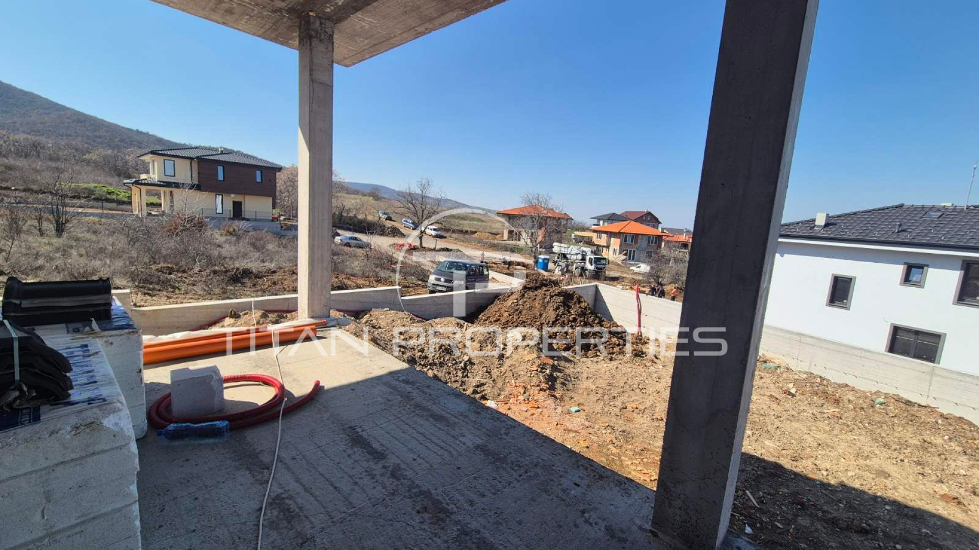 Титан Пропъртис има удоволствието да Ви представи напълно самостоятелна еднофамилна къща, разположена в ъглов парцел в Марково, гарантиращ както отстояние и простор, така и уникална гледка към града и планината. Имота се изгражда с материали от най-висок клас, тухли "Винербергер", дограма "Саламандър" с троен стъклопакет, покривна система "Тондах".