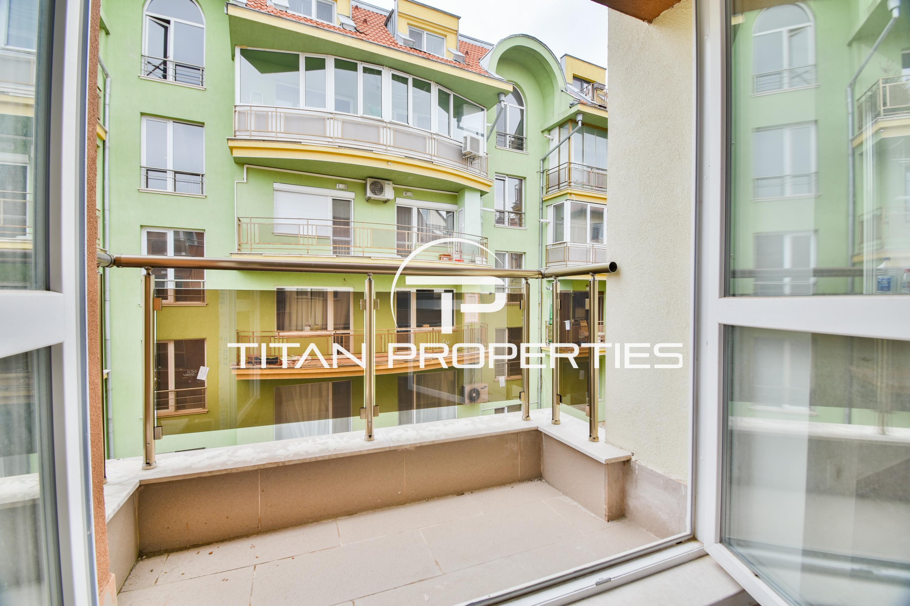 Титан Пропъртис офис - Бул. България с радост предлага на Вашето внимание тристаен апартамент за продажба в кв. Манастирски ливади. Жилището със застроена площ от 99 кв.м. е разположено на 2-ри етаж в нова четириетажна сграда. Изложение Изток/Юг. Разпределението включва входно антре, хол с кухненски бокс, две спални (едната с 4 кв.м. гардеробна), баня с тоалетна, мокро помещение и две тераси. Отоплението е на газ.