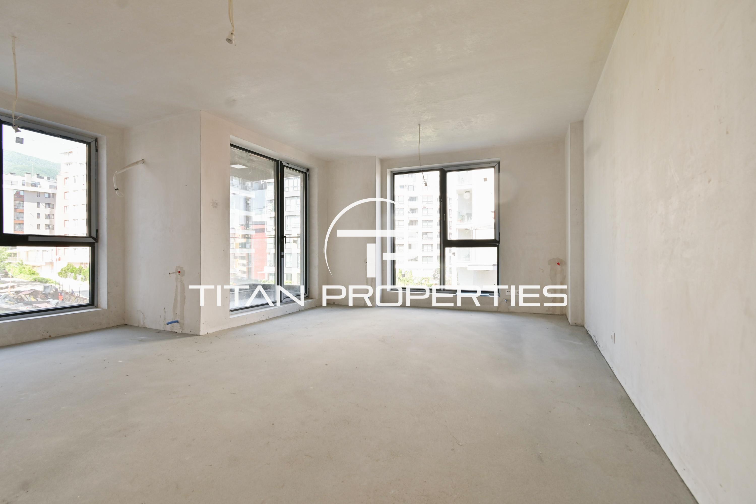 Имотът разполага с площ от 104 кв. м. , 88 кв.м. от които - застроена площ. Апартаментът е разположен на трети жилищен етаж от девет етажа. Разпределението както следва е: входно антре , кухня с трапезария и хол, две спални, две бани с тоалетни и тераса . Изложението е запад / юг. Имотът предлага комбинация от функционалност и стил, като се намира в сграда с модерен дизайн и качествено изпълнение. Предоставя идеалната възможност за новите собственици да създадат своя уютен и стилен дом в един от най-желаните райони на града. Отоплението е предвидено да бъде на газ. Сградата е на Акт 14 , а Акт 16 се очаква 2026г. Жилището се предлага на шпакловка и замазка, предоставяйки възможност за персонализация на интериора. За повече информация или оглед на това и други предложения, моля, свържете се с нас на посочения телефон. Реф. номер: 2091569