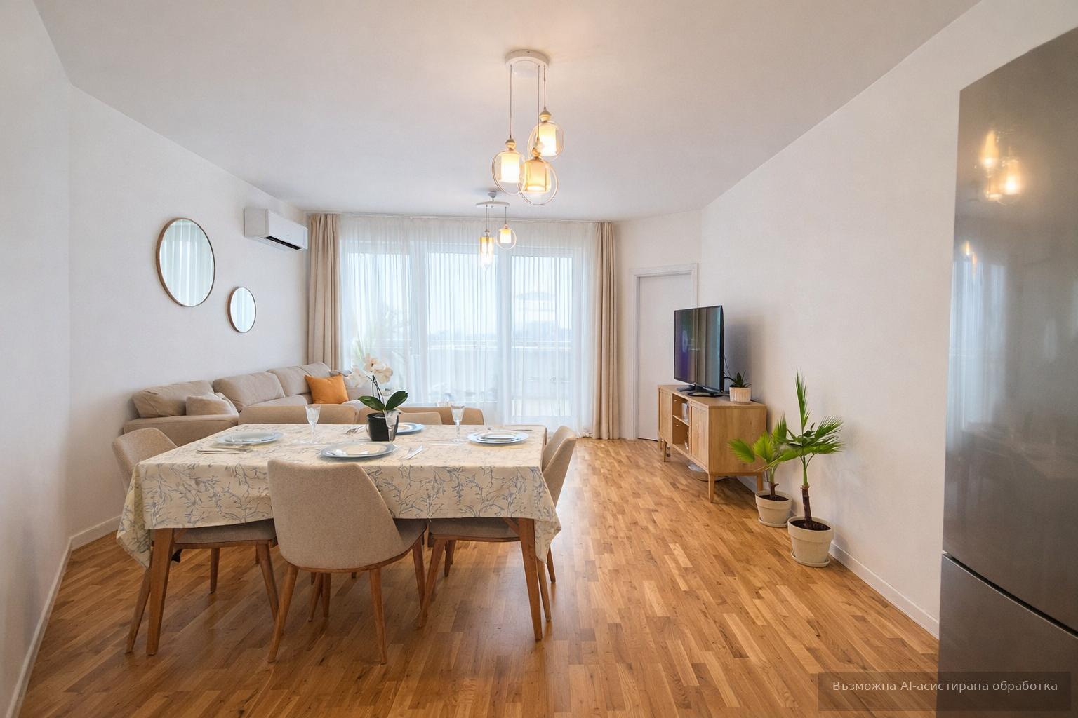 Жилището се предлага напълно обзаведено с чисто нови, модерни мебели и висок клас електроуреди.