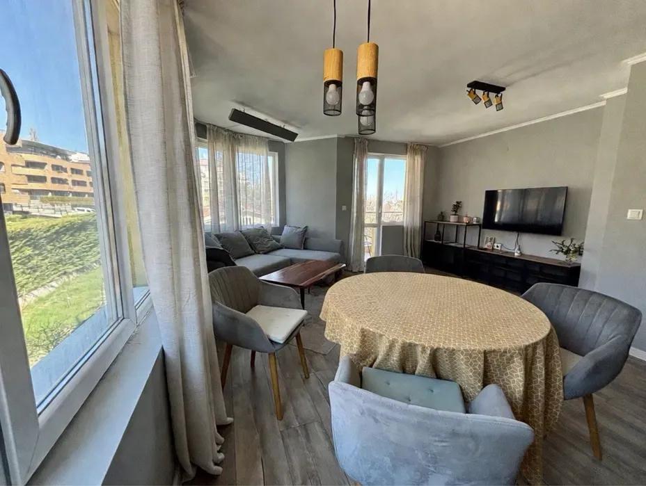 Апартамента е разположен в тих и спокоен район, в близост до спирки на градски транспорт, хранителни магазини, училища.