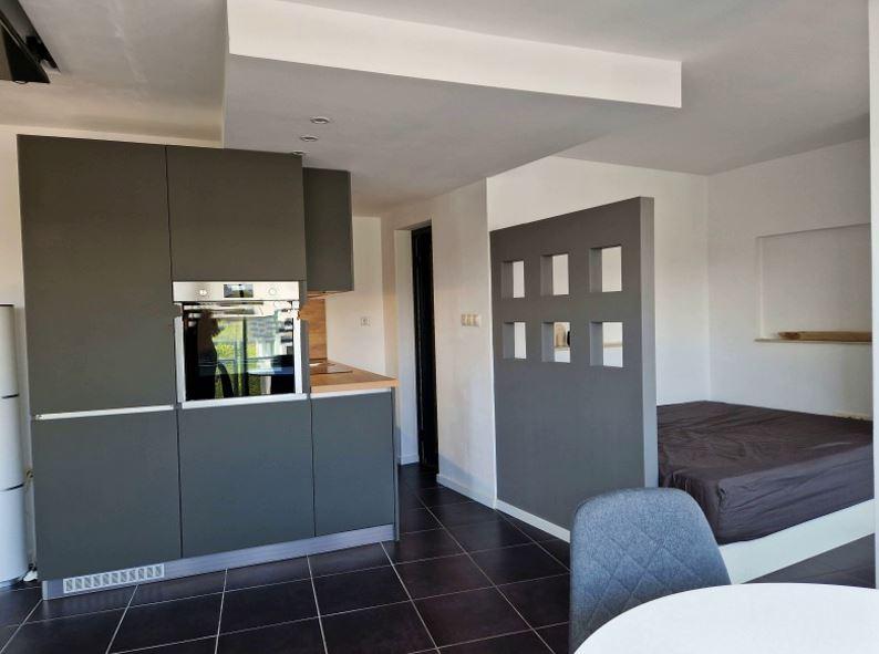 Имота разполага с площ от 58 кв.м разпределени по следния начин: входно антре, кухня със спалня, баня с тоалетна