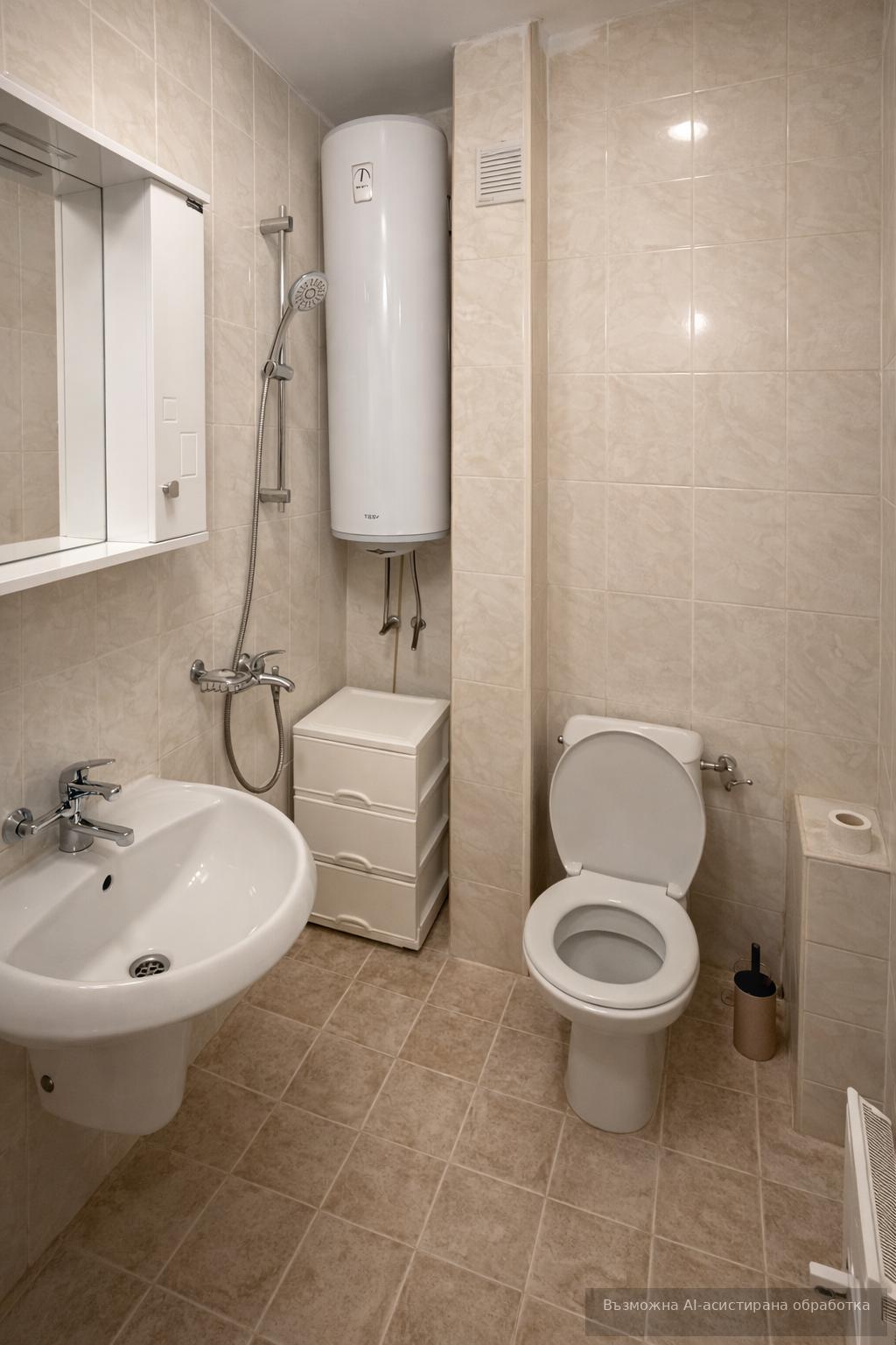 Имотът се предлага напълно обзаведен с всичко необходимо за едно домакинство, с контрол на входа с чип и добре поддържани и чисти общи части.