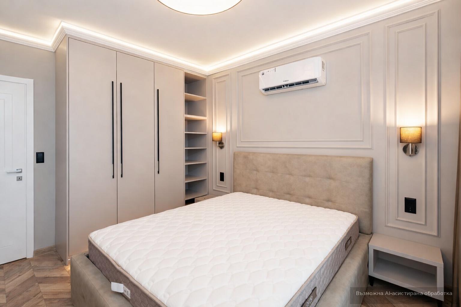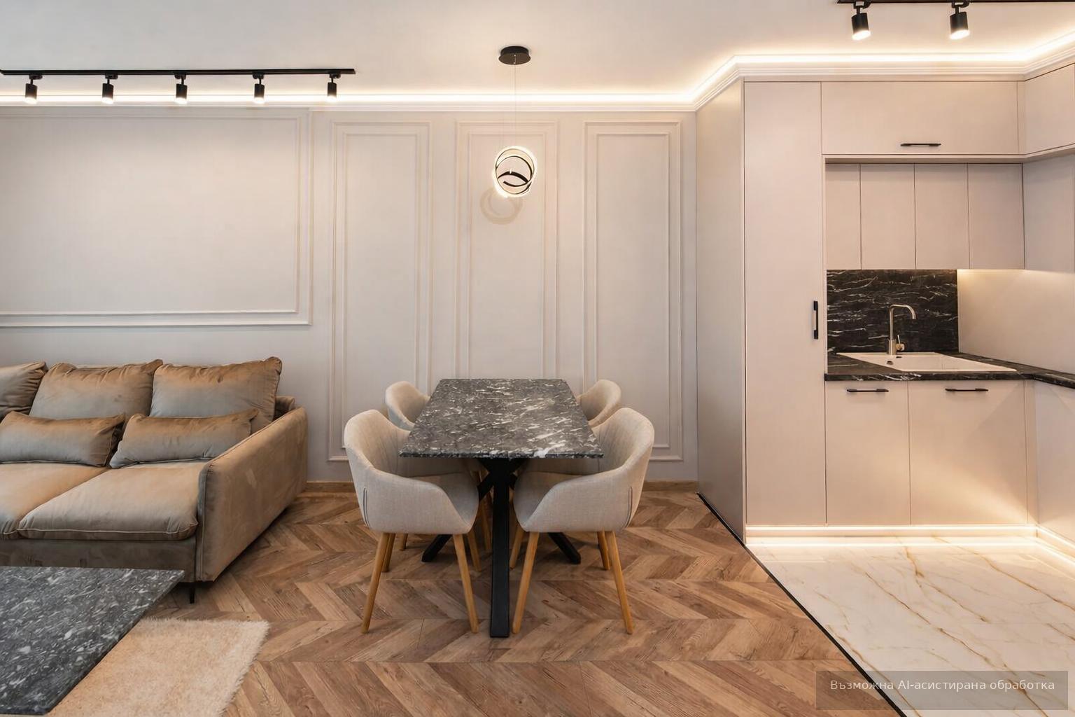 Жилището се предлага напълно обзаведено с нови мебели и висок клас електроуреди, включително пералня и климатици, осигуряващи комфорт за едно домакинство. Разполага също с вградени електрически външни ролетни щори.