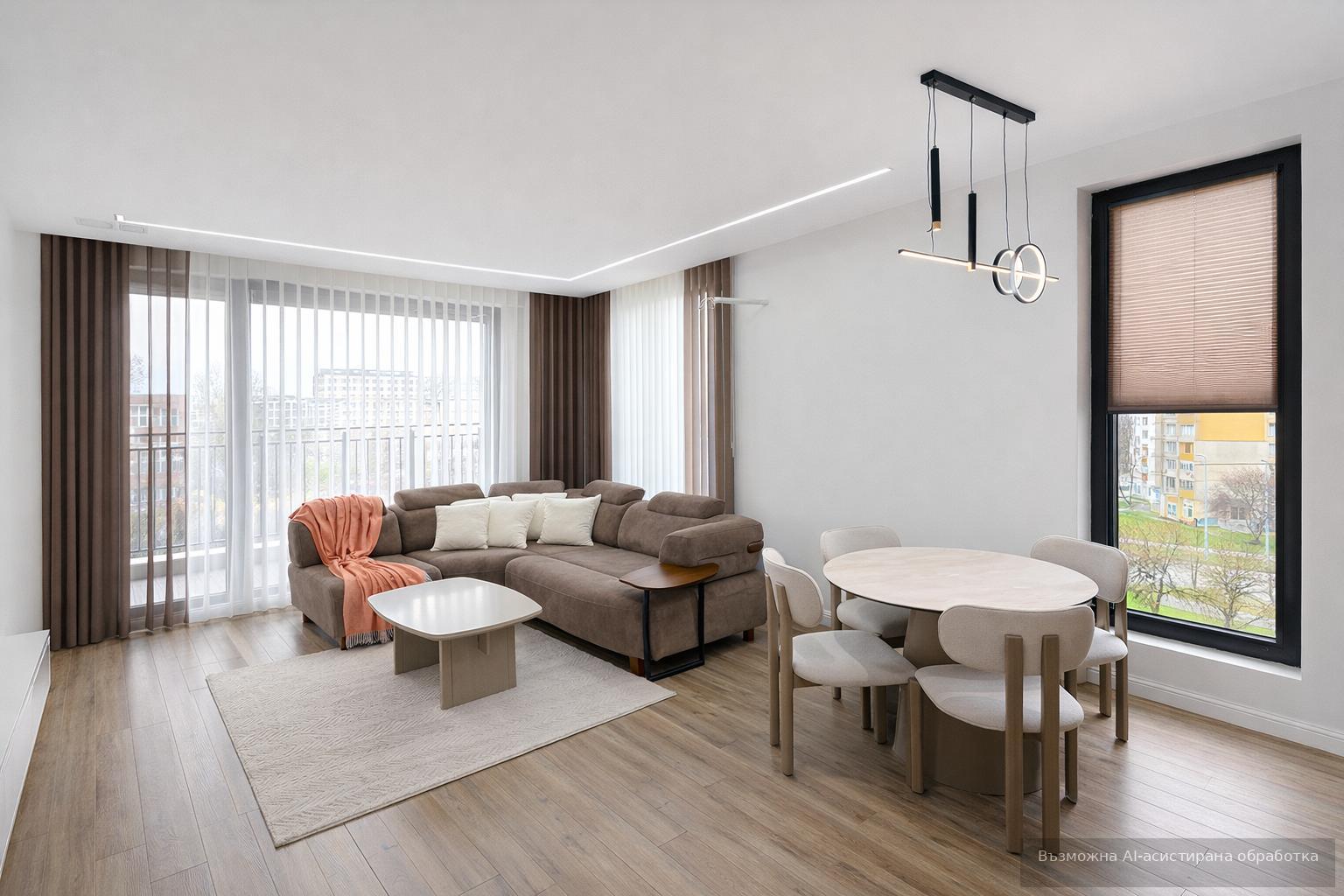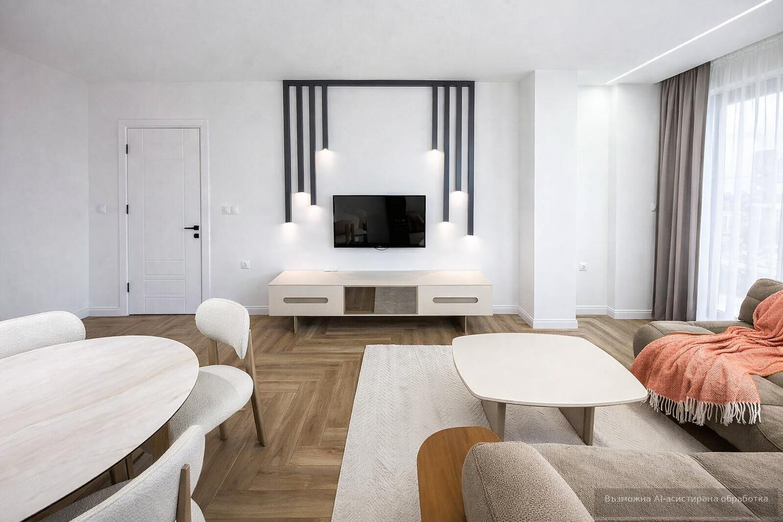 Жилището се предлага модерно обзаведено и оборудвано с всичко необходимо за едно домакинство.