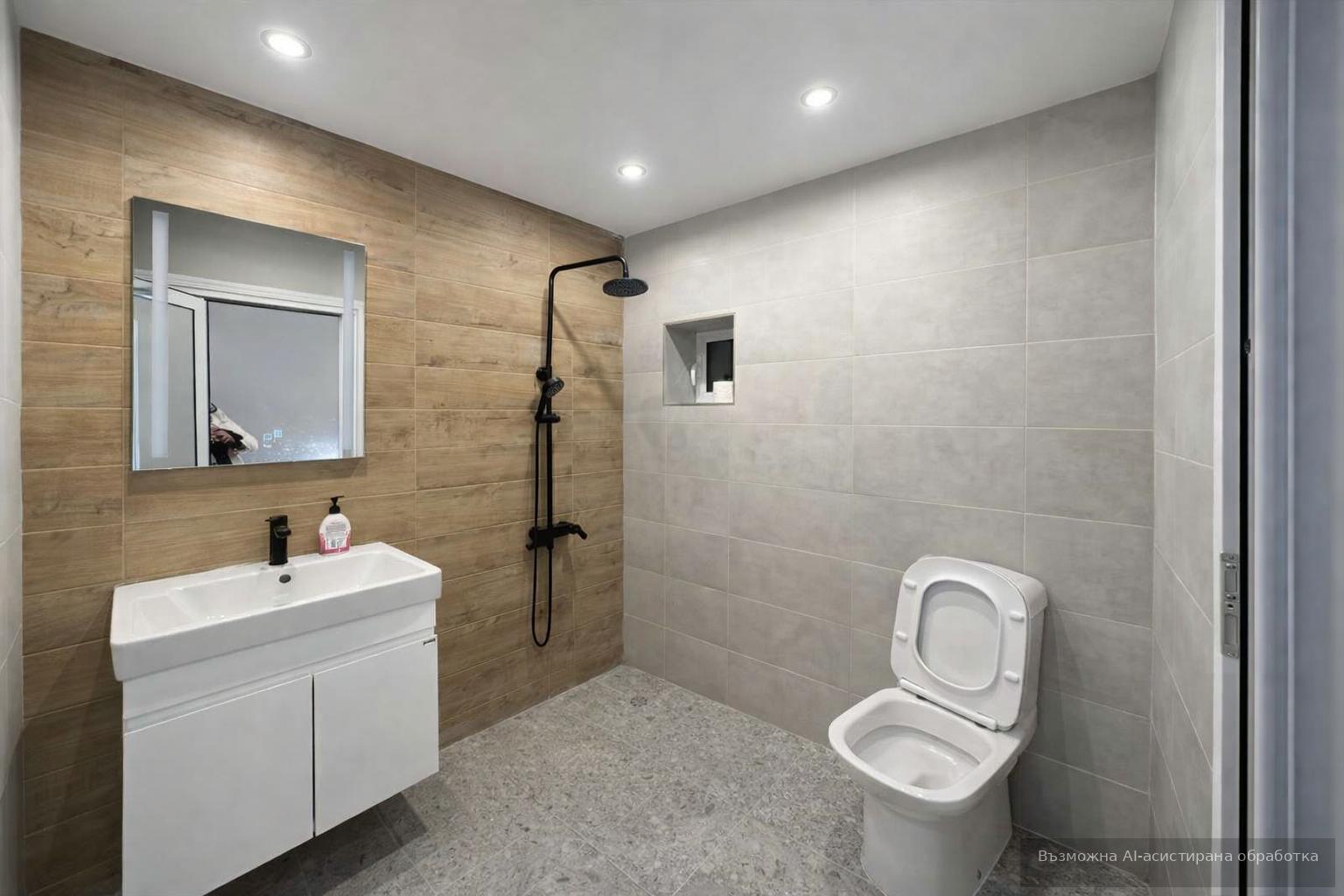 Имотът разполага с площ от 100 кв.м., разгърнати в следното разпределение: входно антре, хол с кухненски бокс, три спални, баня с тоалетна, самостоятелна тоалетна и тераса.