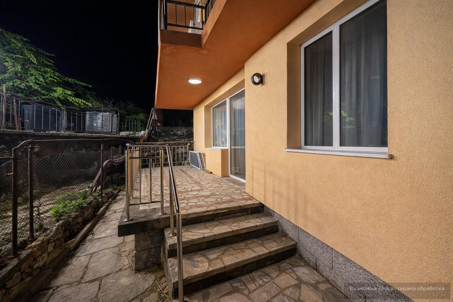 Жилището се предлага напълно обзаведено и оборудвано с всичко необходимо за едно домакинство. Дворът е с площ 2000 кв.м.
