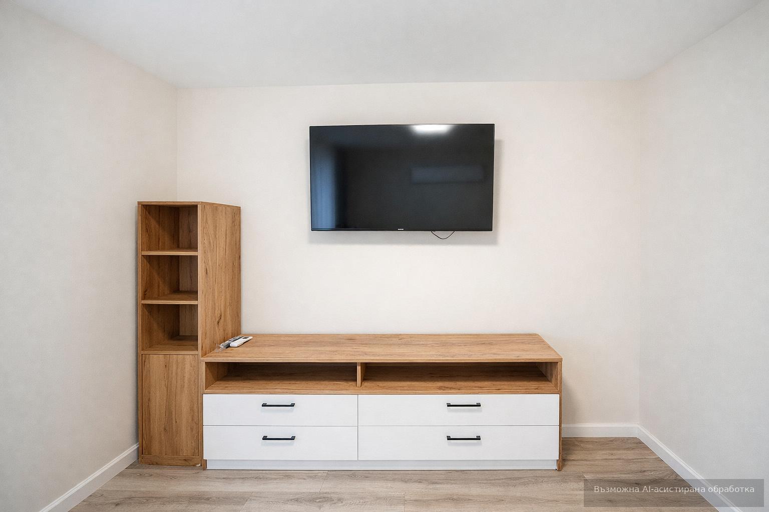 Жилището е чисто ново и се предлага напълно обзаведено и оборудвано с всичко необходимо за едно домакинство.