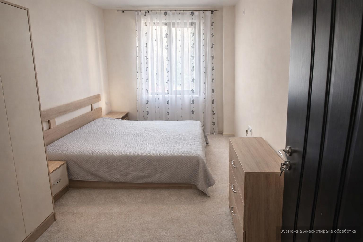 Жилището се предлага напълно обзаведено и оборудвано с всичко необходимо за едно домакинство. Към него има складово помещение. Паркирането в района е свободно.