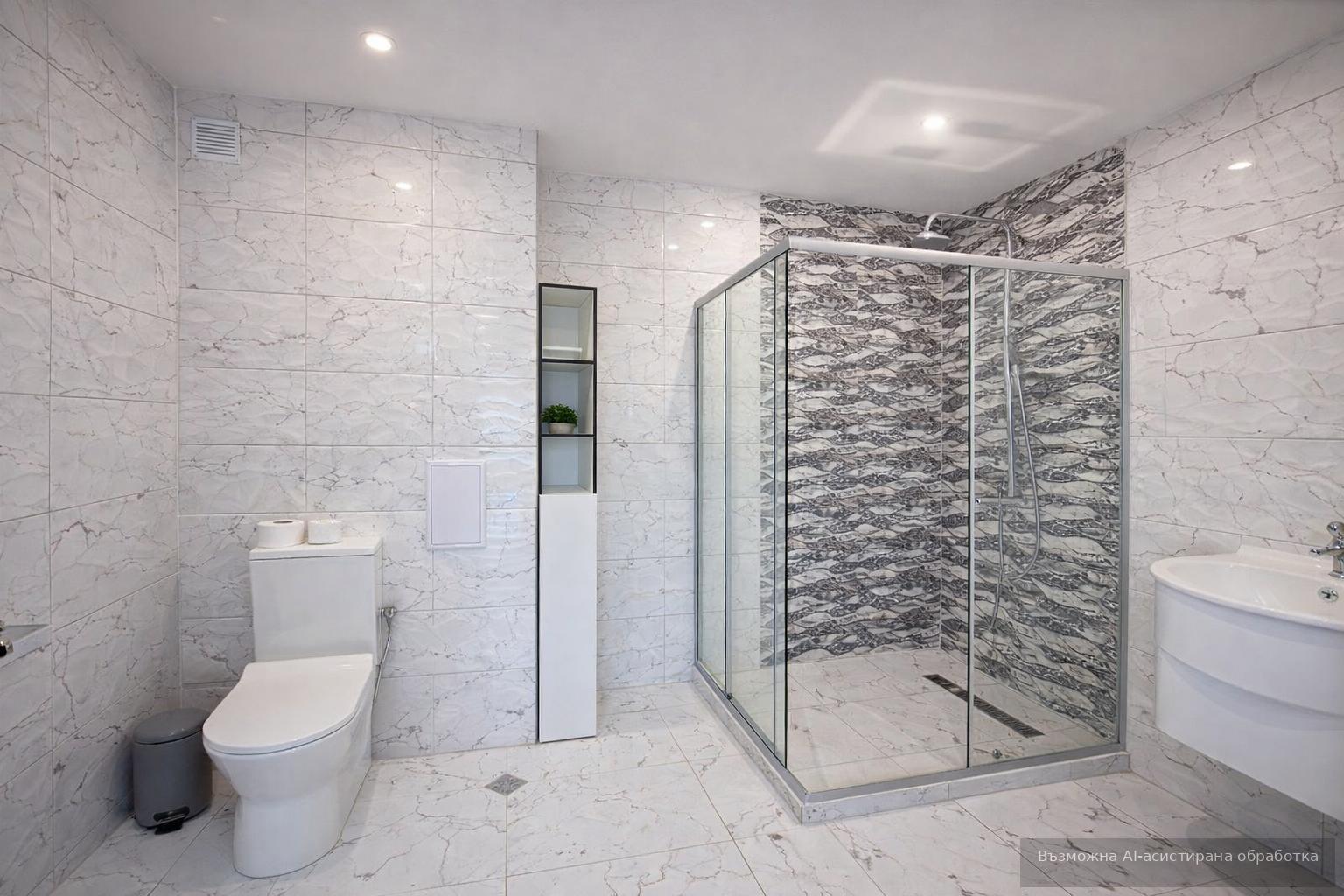 Имотът е ситуиран на 6-ти жилищен етаж и разполага с площ 83кв.м, разгърната в следното разпределение: входно антре, хол с кухненски бокс, две спални, баня с душ кабина и тоалетна, самостоятелна тоалетна и тераса.