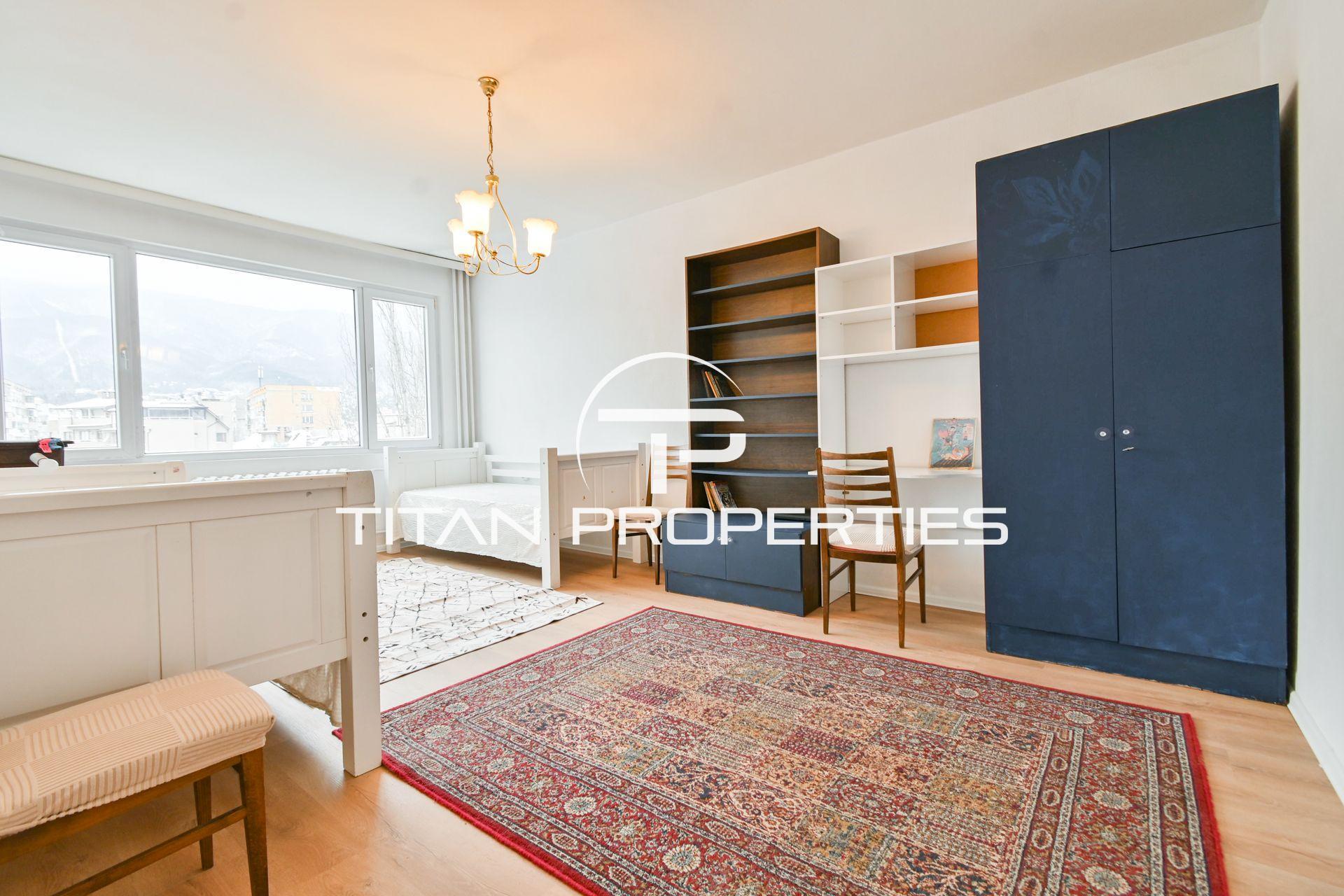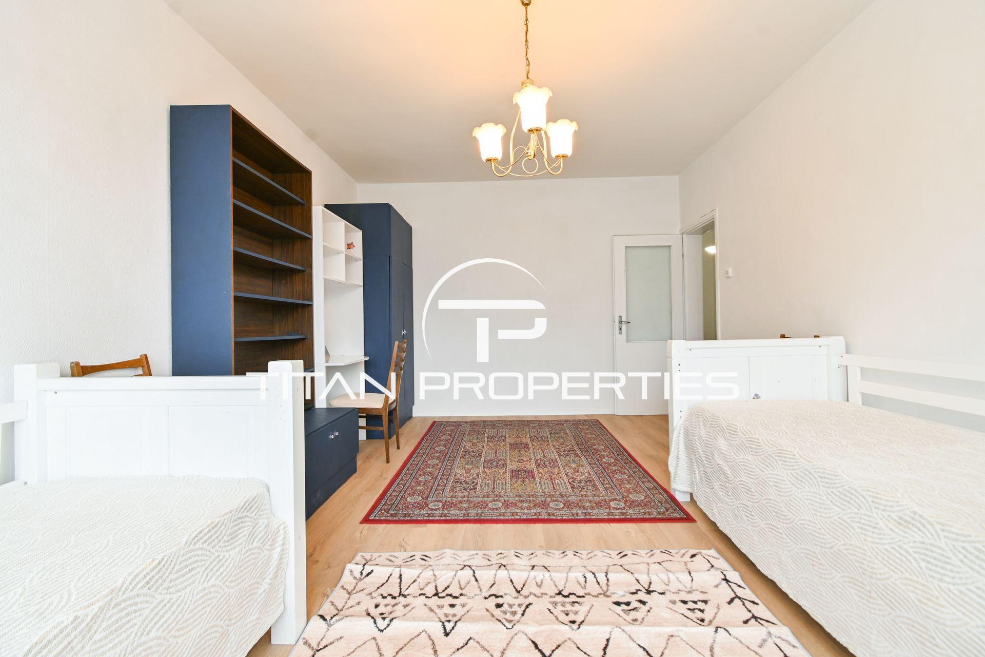 Титан Пропъртис - офис Младост с радост предлага на Вашето внимание двустаен апартамент под наем в жк. Бъкстон, София. Жилището с площ 80 кв.м. се намира на 6-ия етаж в 18-етажна ЕПК сграда. С южно изложение. Разпределението включва входно антре, просторна кухня с трапезария, баня с тоалетна, тераса, спалня с две единични легла и хол със спалня в него. Апартаментът е обзаведен и разполага с отопление на ТЕЦ.