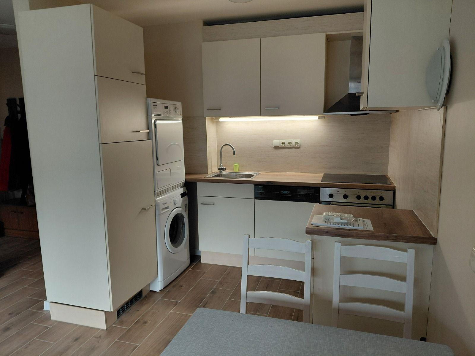 Разпределението включва коридор, кухня и хол, спалня, баня с тоалетна и панорамна тераса. Обзаведен и оборудван за комфорт, отоплява се на газ, което осигурява икономичност. Месечният наем е 650 EUR, идеален избор за младо семейство или двойка, търсещи достъпен и съвременен дом.