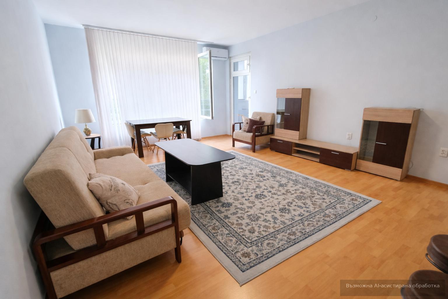 Разполага с функционално разпределение: хол с кухня, спалня, баня и тераса. Обзаведен и отоплява се на ТЕЦ. Месечната наемна цена е 650 EUR. Апартаментът е отлично поддържан и удобно разположен близо до градски транспорт.