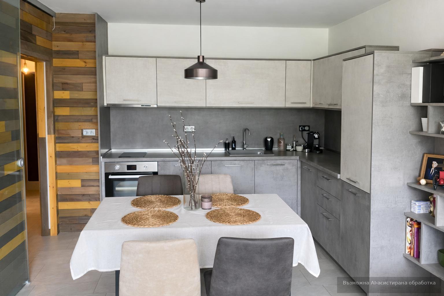 Жилището с площ 58 кв.м. е разположено на 2-ри етаж в нова пететажна сграда. Южно изложение допринася за естествена светлина.