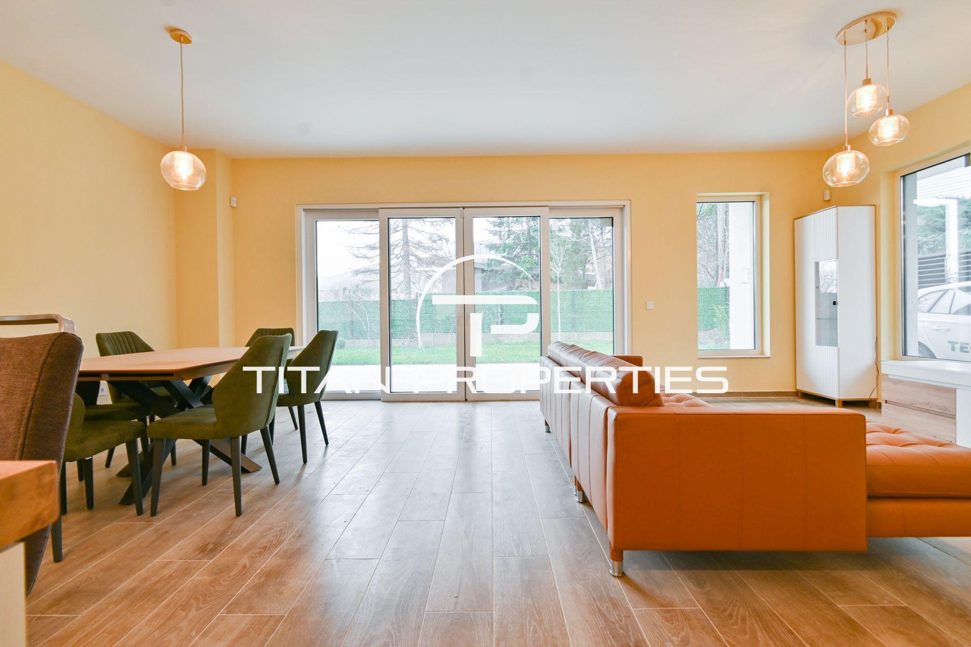 Титан Пропъртис - офис Младост с радост предлага на Вашето внимание луксозна къща под наем в кв. Драгалевци, София с обща площ 400 кв.м. в нова къща. Разпределението включва сутерен: механа, винарна изба, котелно помещение със сензор против наводнение, перално помещение с улей от всички бани, склад с rack шкаф за интернет, СОТ и Smart home система. Партерното ниво включва хол с кухненски бокс и трапезария склад с топла връзка към гаража, веранда, двор и паркомясто. Вторият етаж разполага с три спални с отделни тераси, една със собствена баня и дрешник, както и допълнителна баня и тоалетна. На третия етаж е голяма стая/офис с П-образна тераса и баня с тоалетна. Отопление с термо помпа има опция и на газ. Разполага със системна Smart home за управление и следене на жилището. Къщата се предлага напълно обзаведено с чисто нови мебели и оборудвано с висок клас ел. уреди.