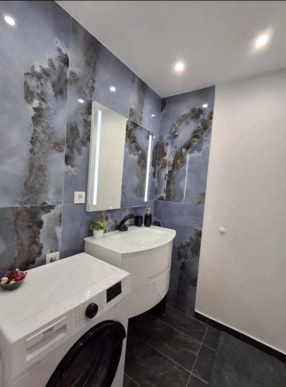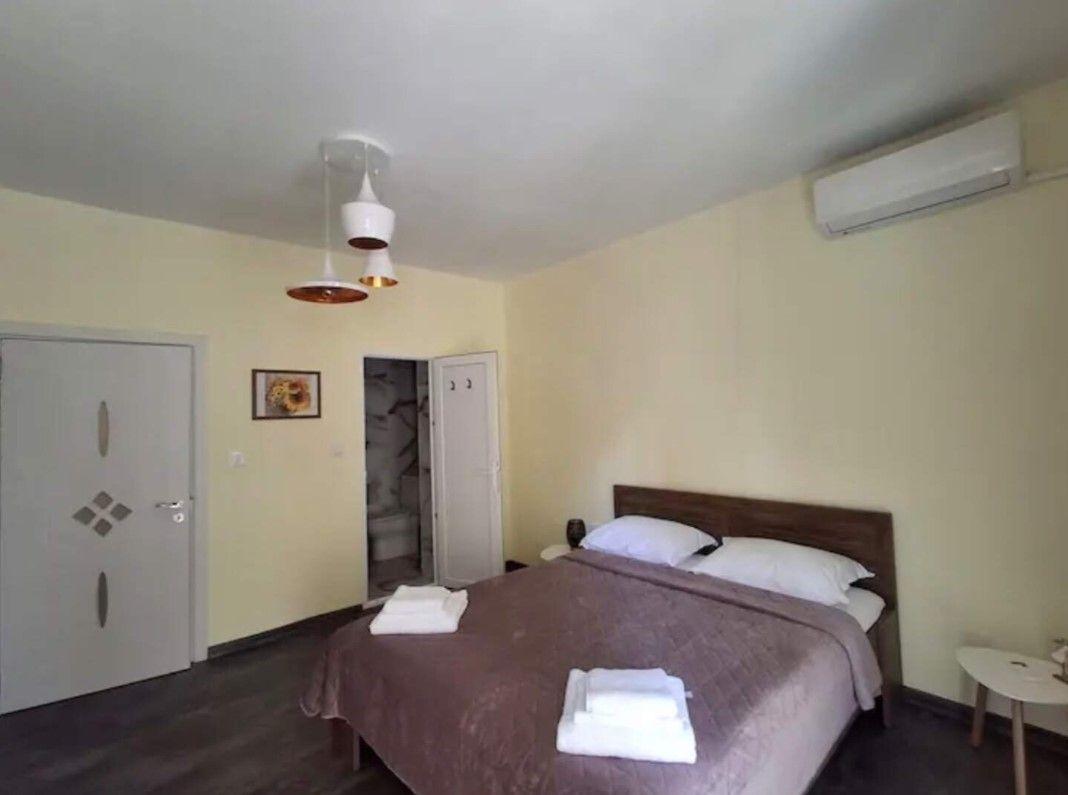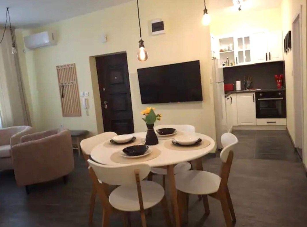 Разпределението включва хол с кухня, две спални (едната със самостоятелна баня), втора баня и мокро помещение. Апартаментът е обзаведен, отоплява се на ТЕЦ, оборудван е с климатик и интернет окабеляване и е близо до спирки. Месечният наем е 800 EUR.