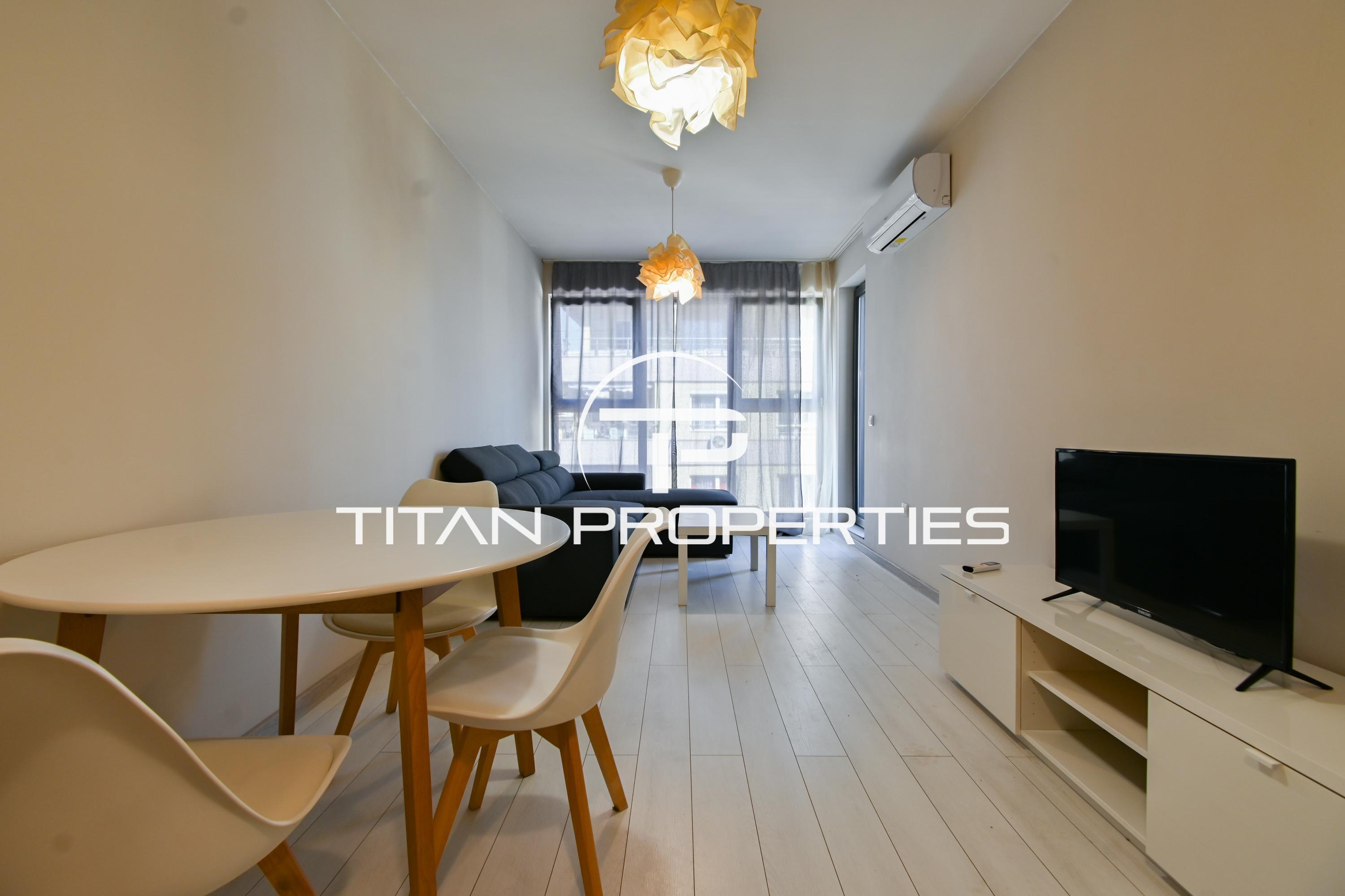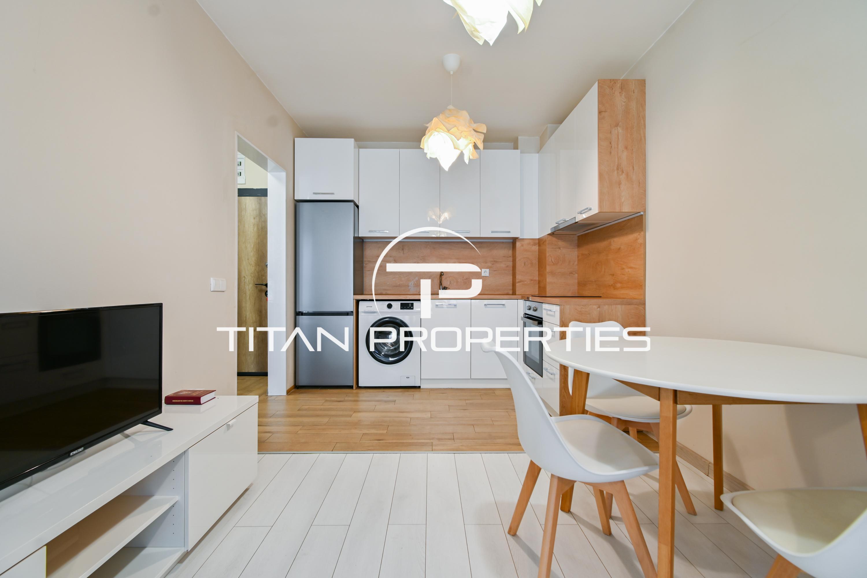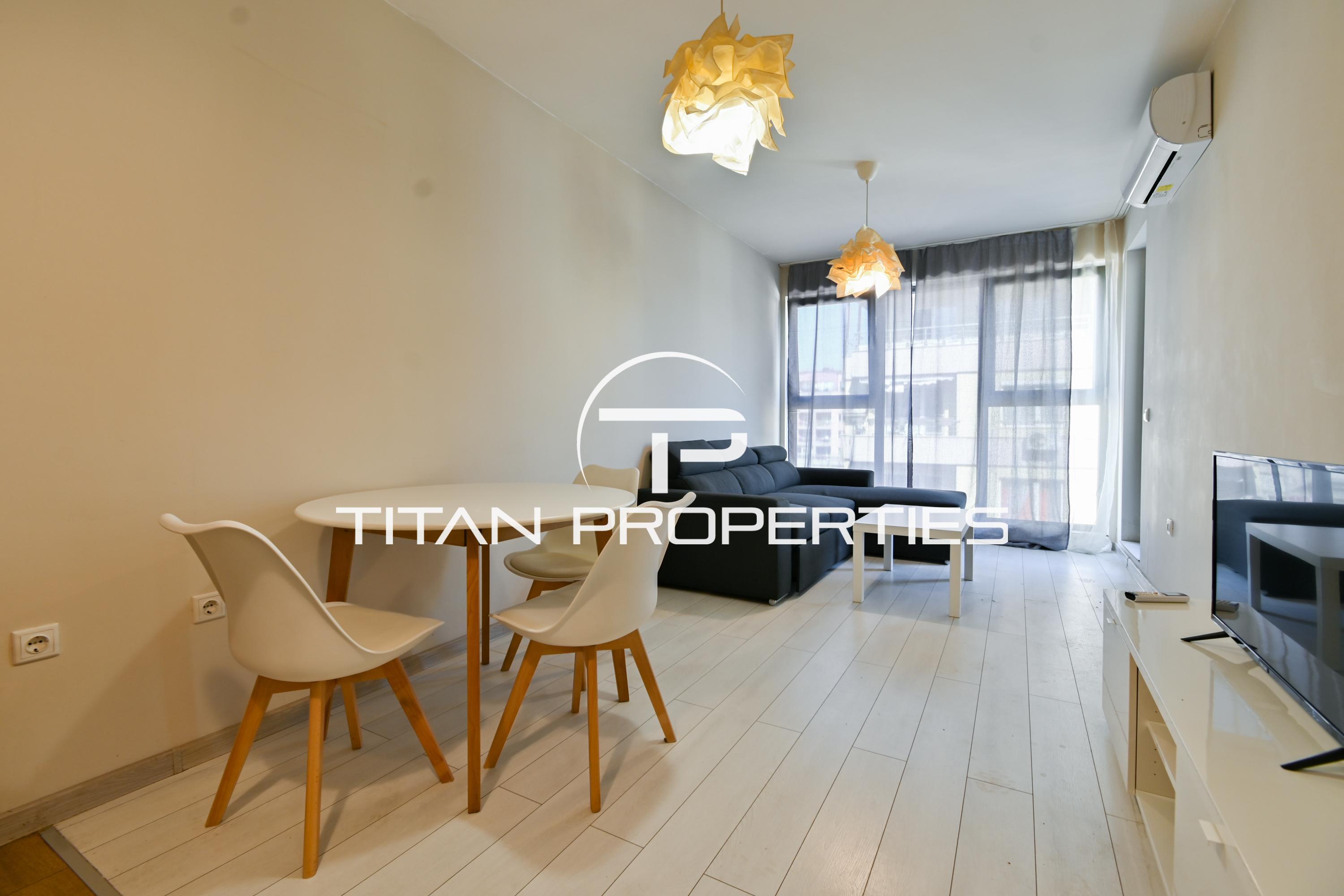 Титан Пропъртис - офис Младост с радост предлага на Вашето внимание двустаен апартамент под наем в жк. Дървеница, София. Жилището е с площ 65 кв.м. и се намира на 5-ти етаж в нова шестетажна сграда. Изложението е южно. Разпределението включва входно антре, просторен хол с кухненски бокс, спалня, тераса и баня с тоалетна. Апартаментът е обзаведен, отоплява се на ток, посредством климатици.