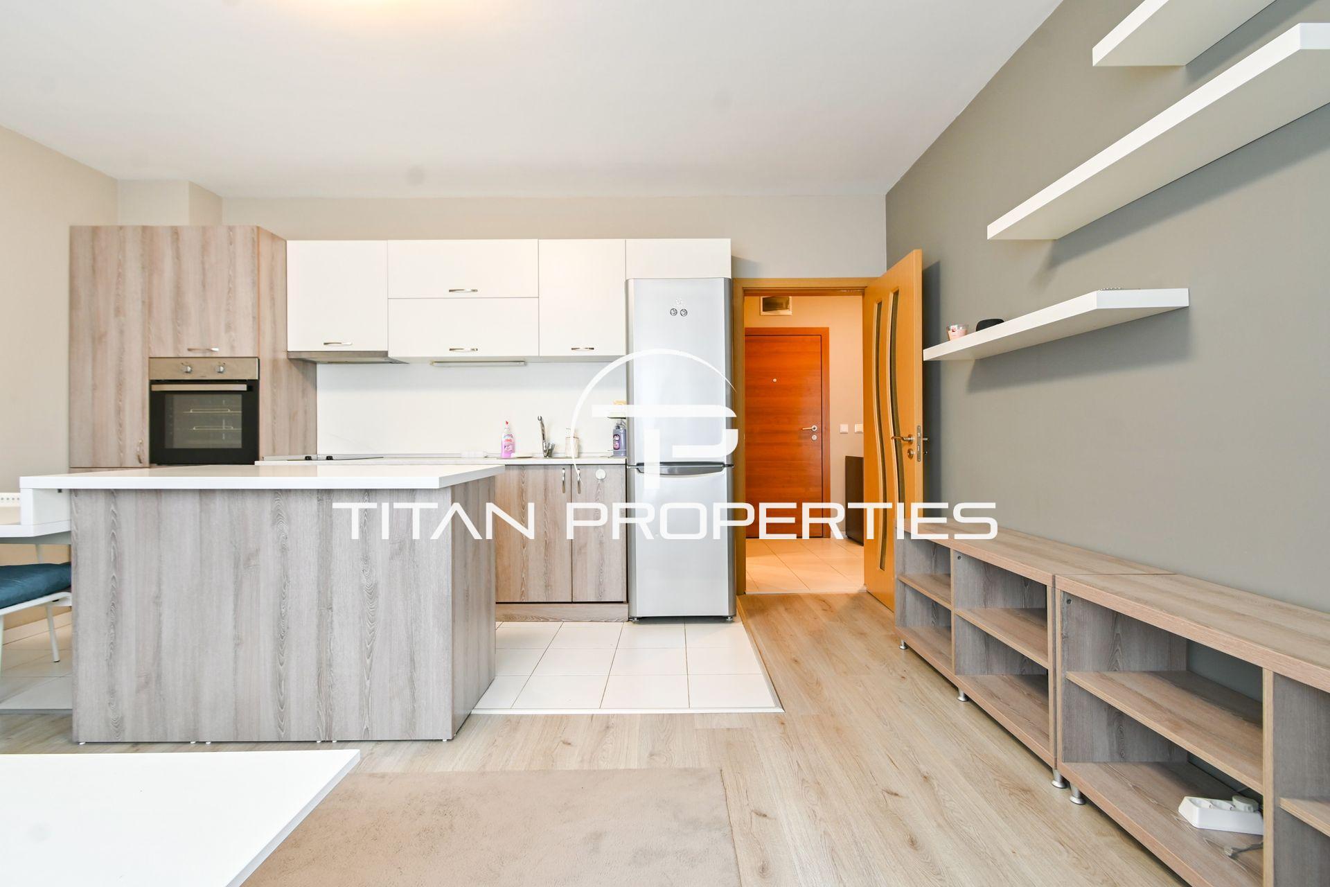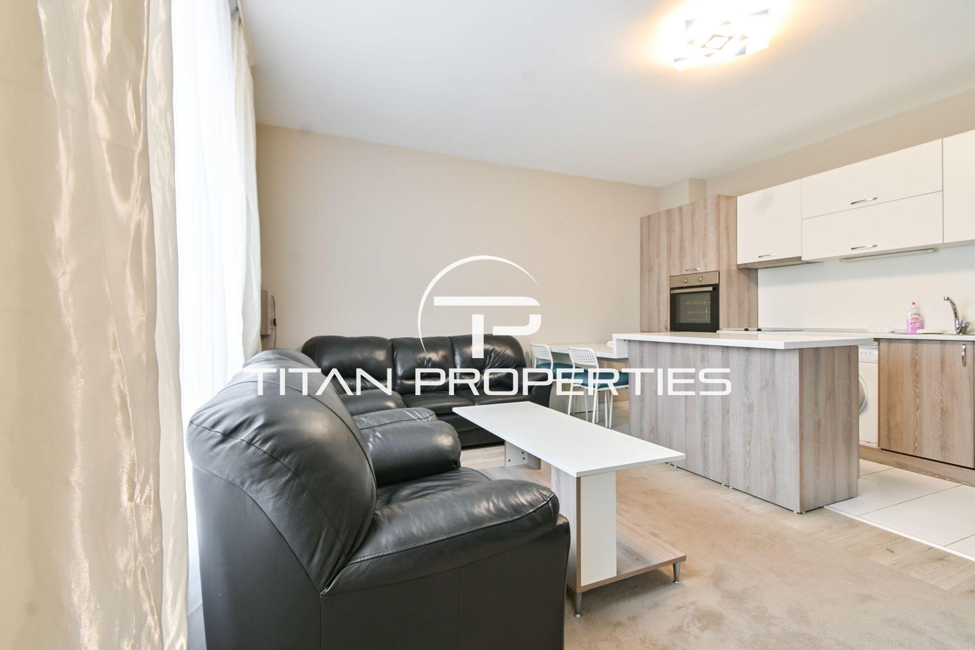 Титан Пропъртис - офис Младост с радост предлага на Вашето внимание двустаен апартамент под наем в кв. Манастирски ливади, София. Жилището с площ 57 кв.м се намира на 2-ри етаж от 5 в нова сграда. Изложението е южно. Състои се от входно антре, хол с кухненски бокс, спалня, баня с тоалетна и тераса. Обзаведен и е оборудван с всичко необходимо за едно домакинство. отоплява се на ток, посредством климатици.