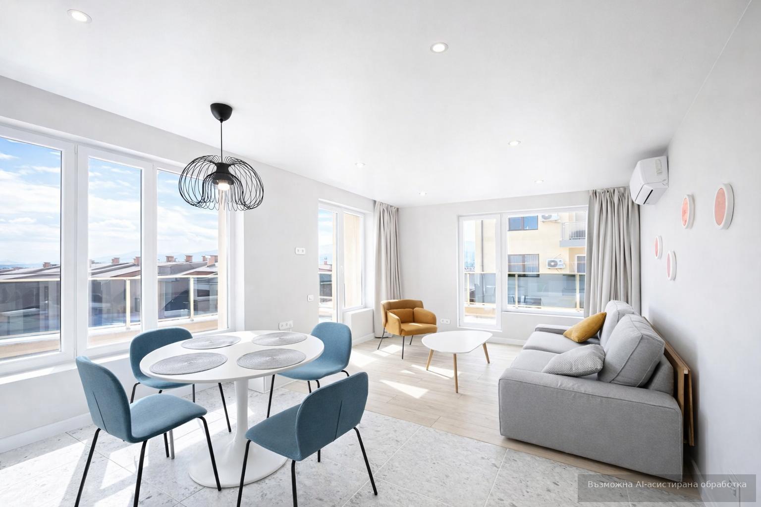 Жилището се предлага напълно обзаведено и оборудвано, готово за нанасяне или отдаване под наем. Към имота се предлага външно паркомясто с площ от 12,5 кв.м. на цена от 13 000 евро.