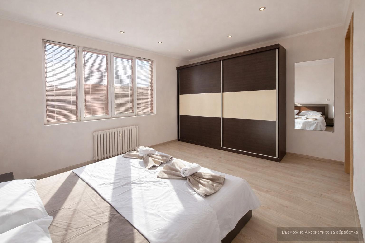 Жилището се предлага напълно обзаведено и оборудвано с всичко необходимо за едно домакинство.
