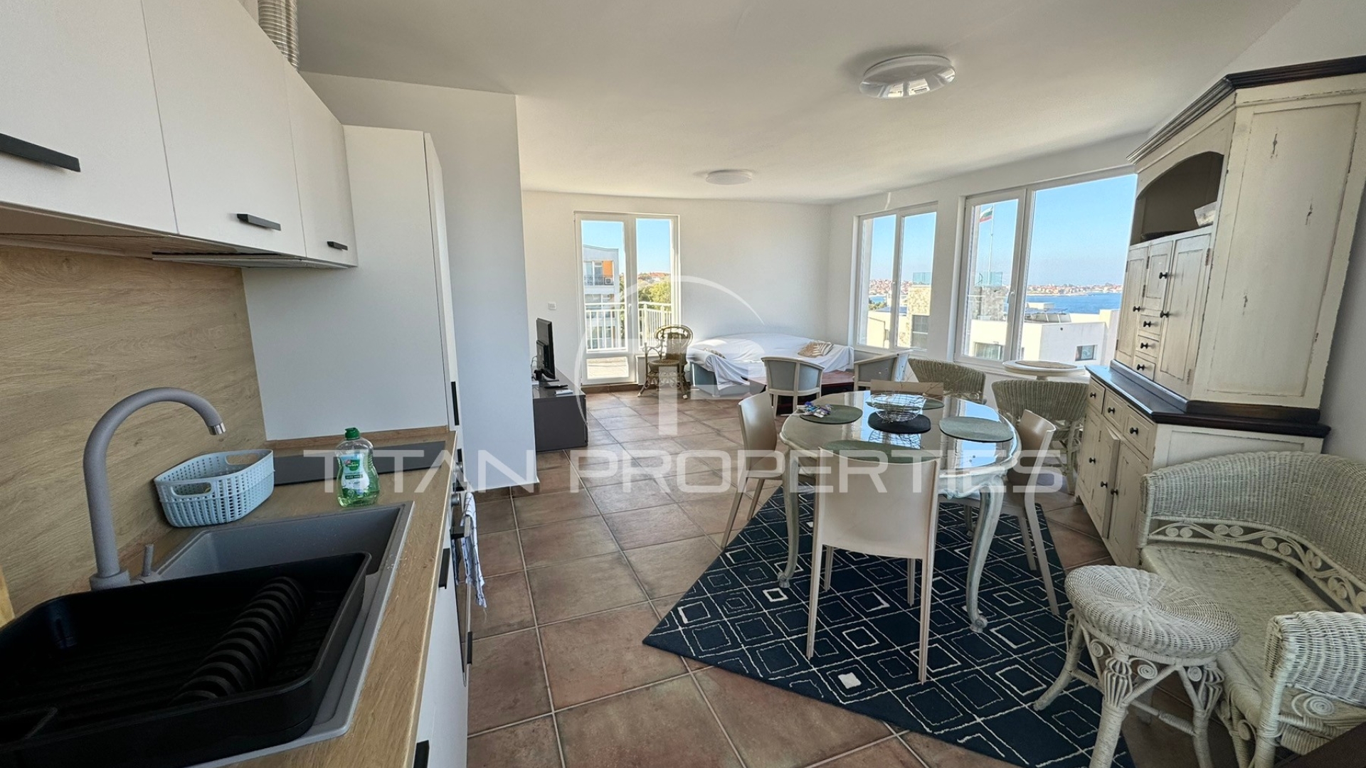 Агенция за недвижими имоти ”Титан Пропъртис” предлага на Вашето внимание за продажба, Тристаен обзаведен апартамент с Акт 16 на първа линия до плажа в гр. Созопол.
